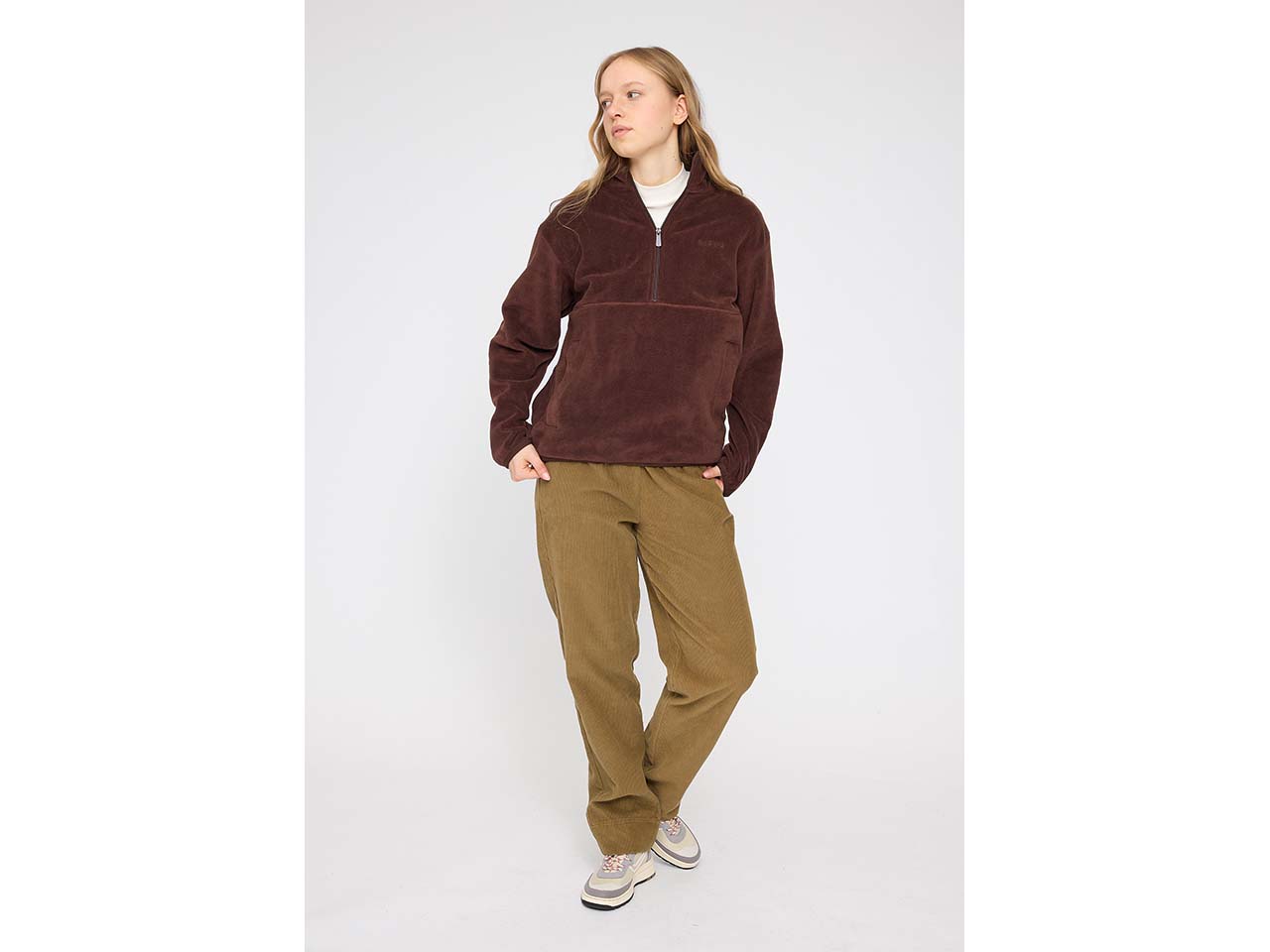 Weich, cool und perfekt für die kühle Jahreszeit! Die Fleecejacke mit Half-Zip ermöglicht verschiedene Tragemöglichkeiten. Das Fleecematerial besteht aus Recycling-Polyester und ist daher nicht nur vegan, sondern auch funktional. Der Stehkragen ist perfekt, um Damen vor Wind und Kälte zu bewahren. In den Eingrifftaschen können die Hände aufgewärmt oder Kleinigkeiten wie das Smartphone aufbewahrt werden.