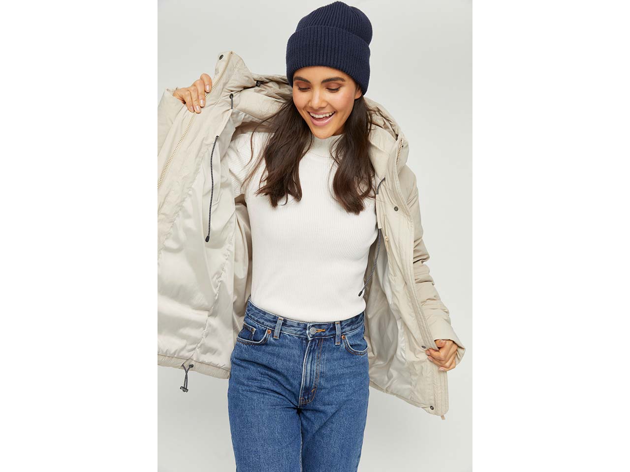 Auf Style verzichten, weil es draußen kalt ist? Diese Zeiten sind vorbei! Der coole Parka mit veganer Füllung aus recyceltem Polyester hält richtig schön warm und setzt Fashionstatements. Praktisch ist er darüber hinaus auch noch: Die großen Taschen und die Reißverschlusstasche im Inneren bieten viel Platz für die Aufbewahrung von Wertgegenständen. Die seitlichen Taschen sind auch ideal, um sich einfach nur die Hände aufzuwärmen. Die Kapuze und der Stehkragen sind bei Regen, Schnee und Wind stets zur Stelle!