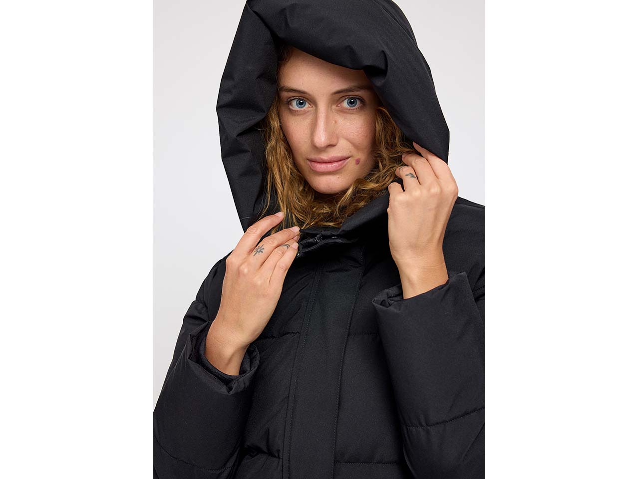 Hier können sich Frauen so richtig einkuscheln, wenn es im Winter mal kalt ist! Die große Kapuze schützt vor Wind und Niederschlägen. Dabei ist sie besonders weich und wärmend. Der hohe Kragen schützt ebenfalls vor Kälte. Der Steppmantel in wasserabweisender Qualität ist vegan und aus recyceltem Polyester gefertigt. Das Material sorgt für kuschelige Wärme. Die zwei Seitentaschen machen die Jacke perfekt für Alltag und Freizeit.