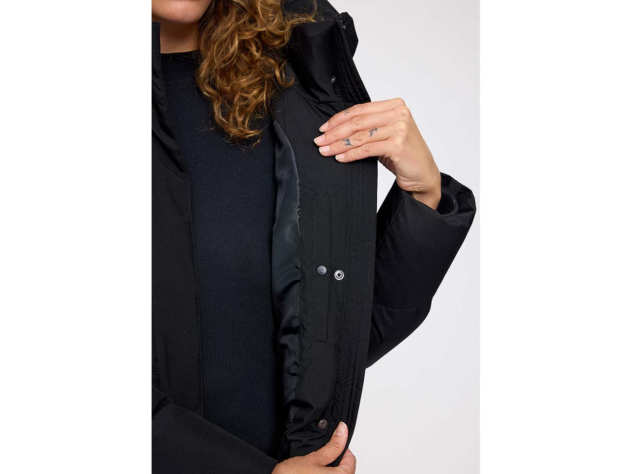 Hier können sich Frauen so richtig einkuscheln, wenn es im Winter mal kalt ist! Die große Kapuze schützt vor Wind und Niederschlägen. Dabei ist sie besonders weich und wärmend. Der hohe Kragen schützt ebenfalls vor Kälte. Der Steppmantel in wasserabweisender Qualität ist vegan und aus recyceltem Polyester gefertigt. Das Material sorgt für kuschelige Wärme. Die zwei Seitentaschen machen die Jacke perfekt für Alltag und Freizeit.