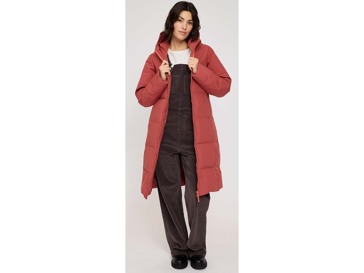 - Veganer Steppmantel mit Kapuze und hochgeschlossenem Kragen