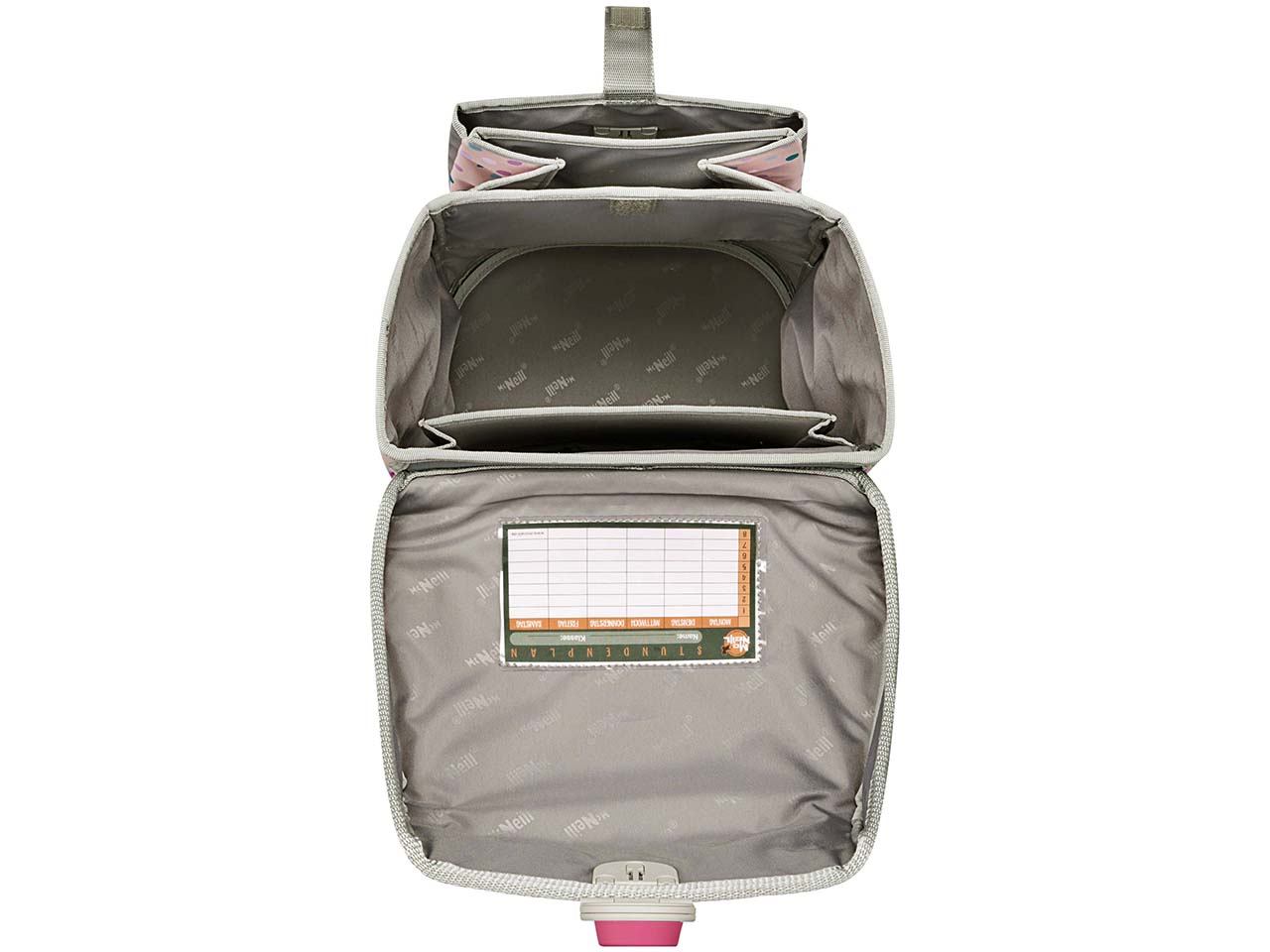 | Fächer: | 2 Bücherfach im Hauptfach, 2 Vortaschen mit Organizer, 2 Seitenfächer mit Gummizug |