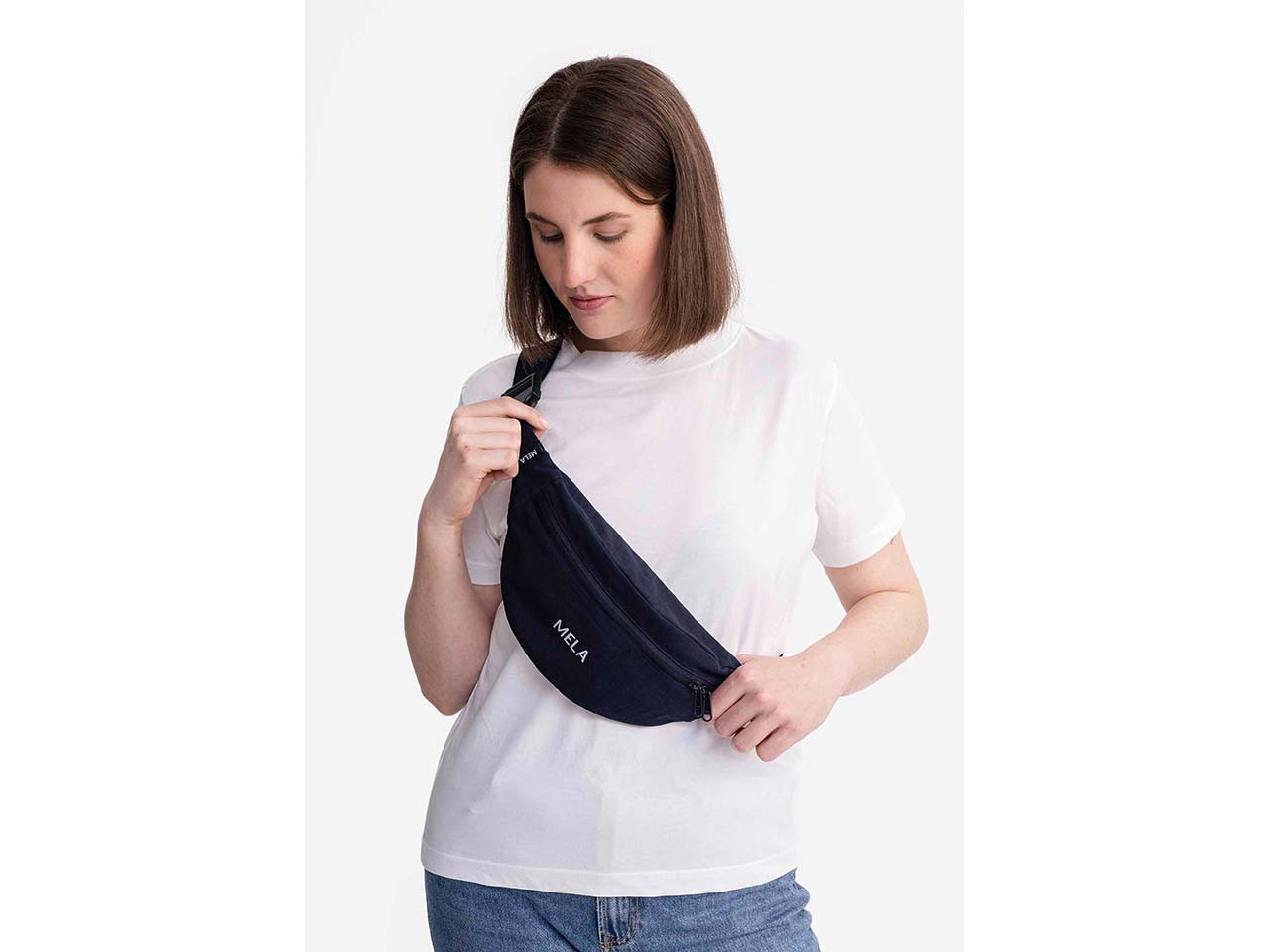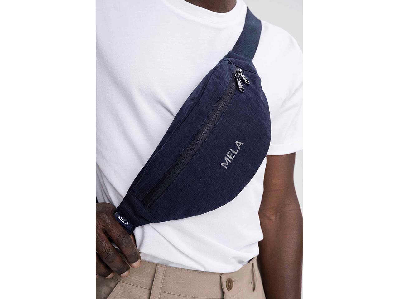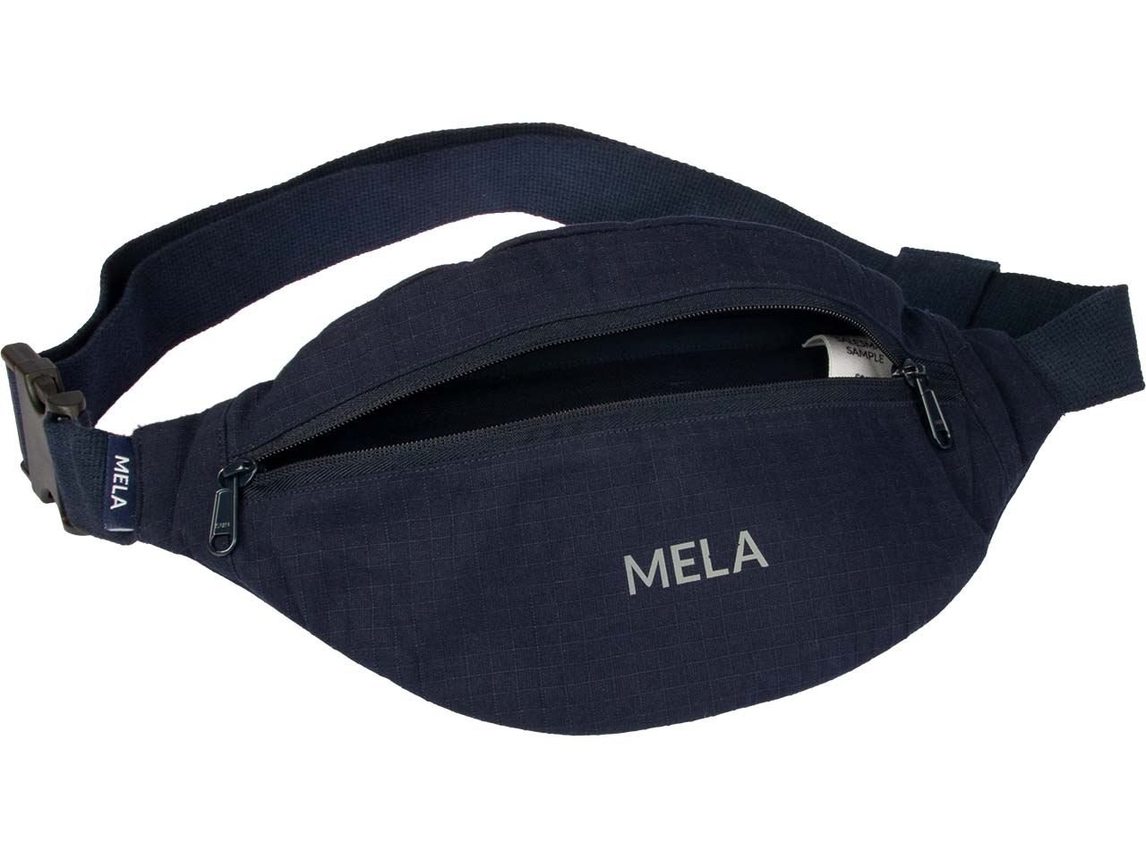 Praktisch im Alltag und im Urlaub: Die MELA Bauchtasche ermöglicht verschiedene Trageweisen und bietet mit dem Hauptfach und dem kleinen Fach auf der Rückseite Platz für Geldbeutel, Smartphone und Schlüssel. Tasche und Gurte sind aus GOTS- und Fairtrade-zertifizierter Bio-Baumwolle gefertigt. Dank der Ripstop-Qualität ist das Material besonders robust und strapazierfähig. Besonders cool: Der MELA-Logo-Print ist nicht nur reflektierend, sondern entspricht sogar dem GOTS!