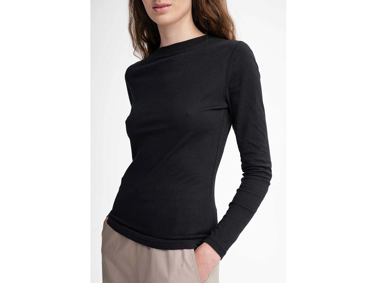 MELA Bio-Damen-Langarmshirt "DHIVYA" mit Feinripp-Rundhalsausschnitt