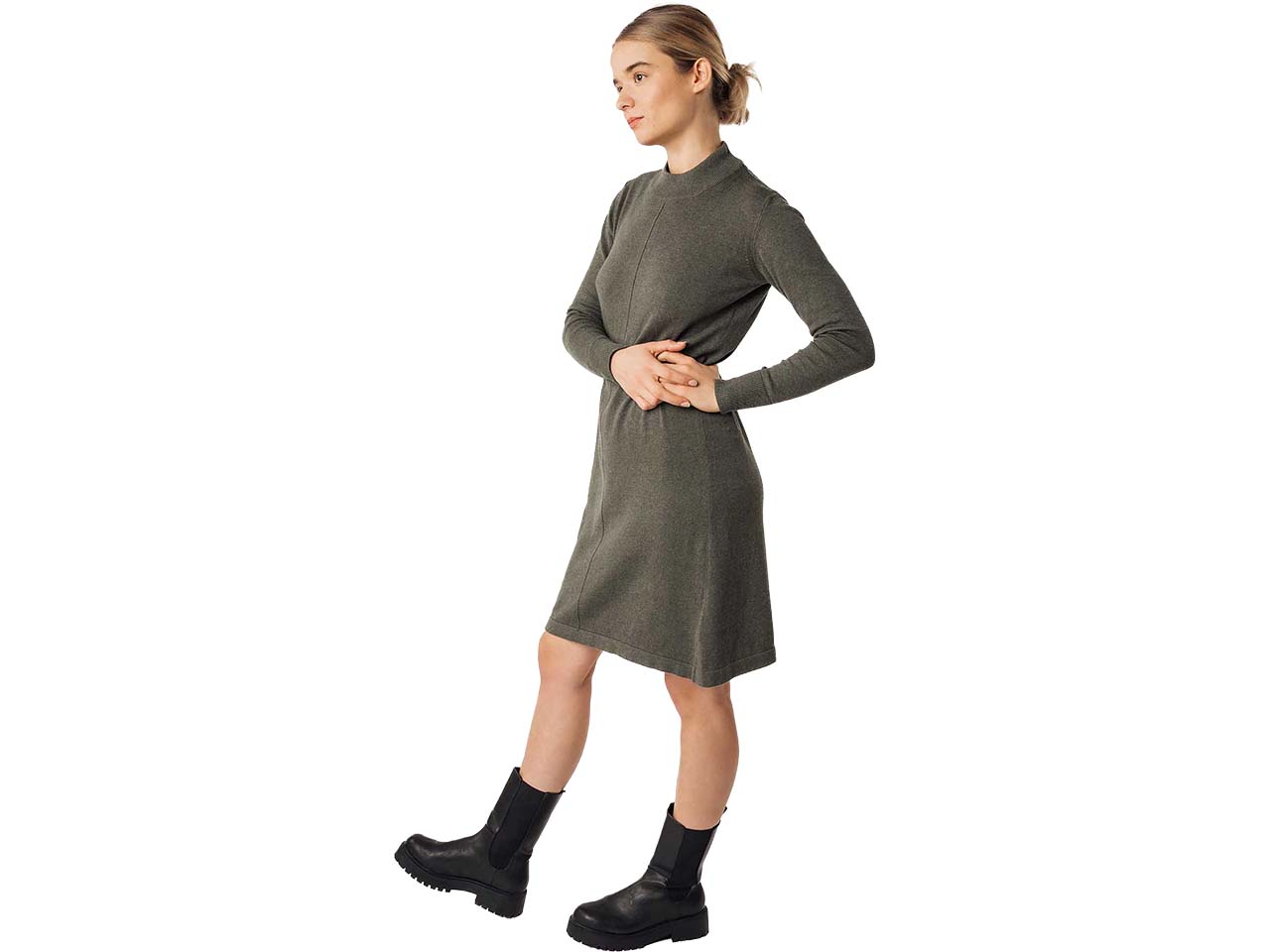 Lässig und gleichzeitig elegant – dieses Kleid beweist, dass es klappt! Langärmelig und kuschelig weich passt das Kleidungsstück perfekt in die kühlere Jahreszeit. Die Grüner Knopf-, GOTS- und Fairtrade-zertifizierte Bio-Baumwolle in 160 g/m²-Qualität sorgt für einen hohen Tragekomfort. Mit Style punktet das Midi-Kleid auch, denn der breite Stehkragen sieht einfach klasse aus und unterstreicht die zeitlose Modernität des Textils. Das Kleid ist vorgewaschen, sodass es seine Passform behält.