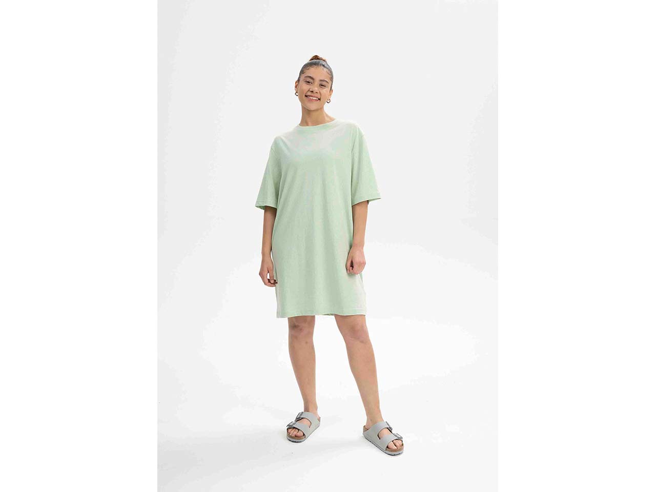 Ein T-Shirt-Kleid in dem man sich so richtig wohlfühlen kann: Das Kleidungsstück ist oversized und wirkt so besonders lässig. Das Single-Jersey aus Bio-Baumwolle fühlt sich weich auf der Haut an. Das T-Shirt-Kleid ist nach GOTS, Grüner Knopf und Fairtrade Cotton zertifiziert und daher gut für Mensch und Umwelt. Der klassische Rundhalsausschnitt und der fein gerippte Kragen machen den Look perfekt. Das Textil ist vorgewaschen, sodass es seine Form behält.