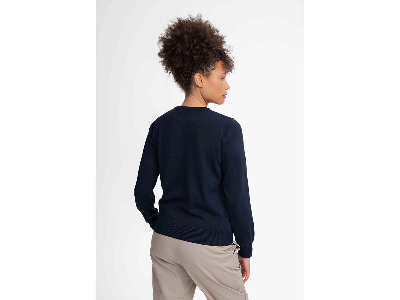 Ein echtes Basic, das sich perfekt für Frühjahr und Sommer eignet! Der Feinstrick-Pullover begleitet Damen an Tagen, an denen es etwas kühler ist. Die gekämmte Bio-Baumwolle in GOTS-, Fairtrade- und Grüner Knopf-zertifizierter Qualität fühlt sich wunderbar weich auf der Haut an. Die normale Passform, der Rundhalsausschnitt mit geripptem Kragen und die Rippbündchen verleihen dem Pulli eine klassische Optik, die zu vielen Outfits passt. Da das Textil vorgewaschen ist, behält es seine Passform.