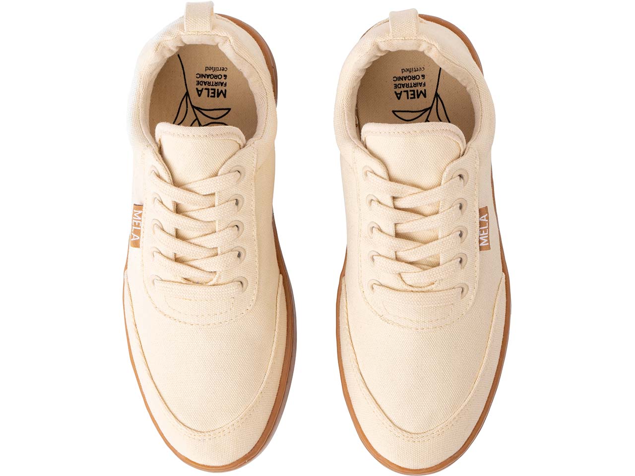 Die MELA Sneaker sind eine Alternative zu konventionell hergestellten Schuhen, die zumeist mit Baumwolle aus nicht-ökologischem Anbau oder mit Kunstfasern im Oberschuh gefertigt werden. Die Sohlen sind bei diesen Schuhen meistens synthetisch und erdölbasiert. Bei dem Sneakermodell von MELA steht die Materialgesundheit im Vordergrund, weswegen Sohle und Oberschuh nach der Nutzung einfach voneinander getrennt werden können. Der verwendete Kleber ist auf Wasserbasis und gemäß GOTS-Zertifizierung schadstoffarm. Die Materialien sind nachhaltig ausgewählt: Alle Stoffe im Oberschuh bestehen aus Fairtrade Bio-Baumwolle und alle Polsterungen, Schwämme und Innensohle aus Bio-Kautschuk. Die Fairtrade Cotton-Zertifizierung gewährleistet, dass Prämien für Baumwollkooperativen gezahlt und Sozialstandards entlang der gesamten Lieferkette sichergestellt werden. GOTS gewährleistet, dass die Sneaker rückstandsgeprüft und so schadstoffarm sind. Das staatliche Textilsiegel Grüner Knopf kennzeichnet Textilien, die unter besonders hohen Sozial- und Umweltstandards hergestellt sind. Der gesamte Produktionsablauf wird nach strengen Kriterien überwacht und Risiken wie Kinder- und Zwangsarbeit, Menschenrechtsverletzungen sowie Diskriminierungen und deren tatsächliche Auswirkungen regelmäßig überprüft. Für alle Mitarbeitenden ist in der produzierenden Fabrik ein Beschwerdemechanismus eingeräumt.