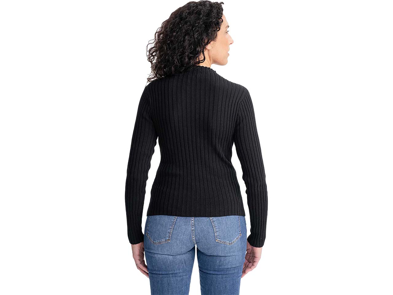 Dieser Strickpullover von MELA ist ein klassisches Basic mit pfiffigen Details. Der Rippstrick-Pullover aus GOTS- und Fairtrade-zertifizierter Bio-Baumwolle schmeichelt der Haut und punktet mit seinem exzellenten Tragekomfort. Die gerippte Struktur verleiht dem Oberteil mit figurbetonter Passform eine harmonische Optik, die sich vielseitig kombinieren lässt. Highlight ist der modische Kragen. Da das Textil vorgewaschen ist, behält es seine Passform.