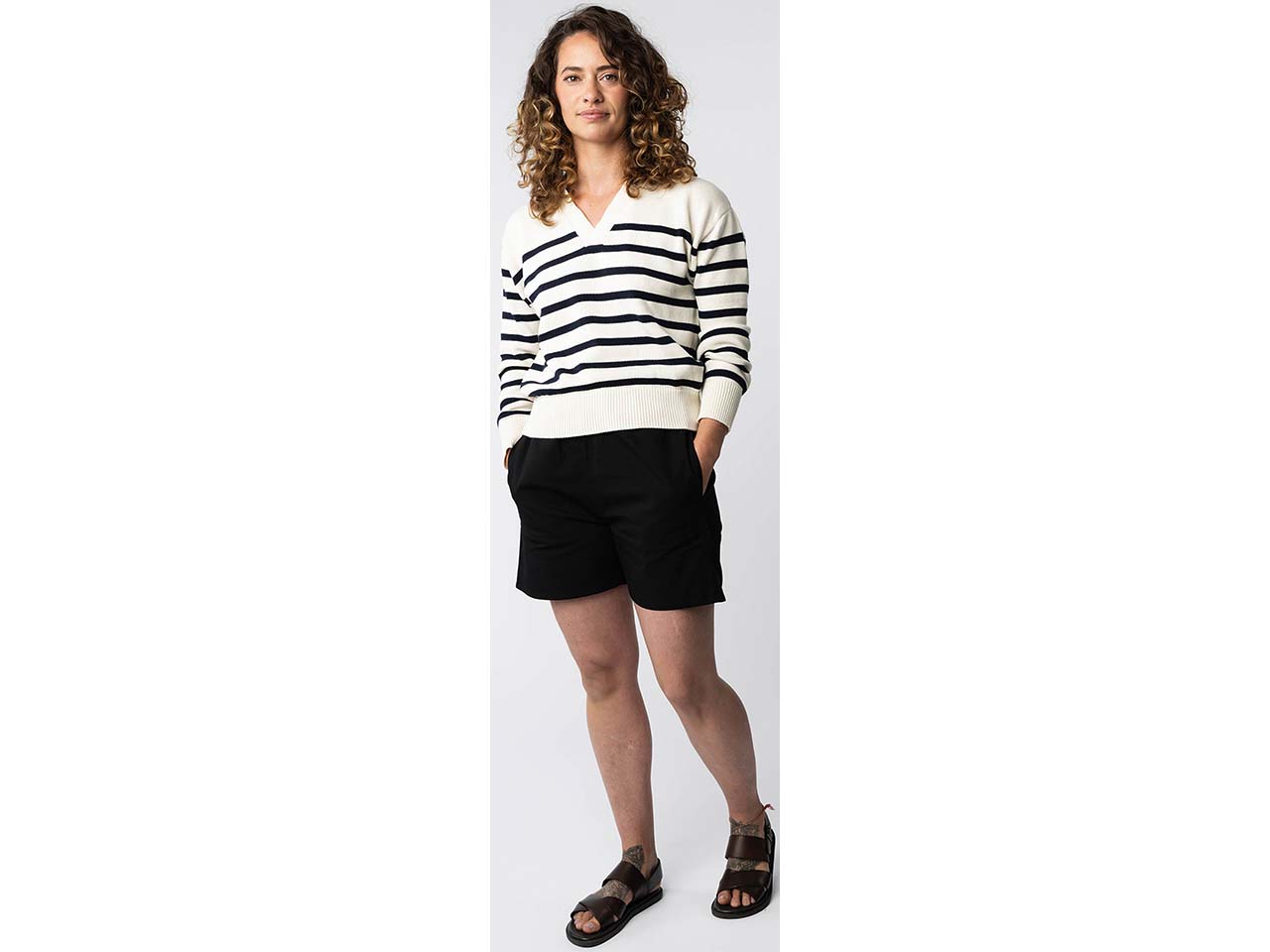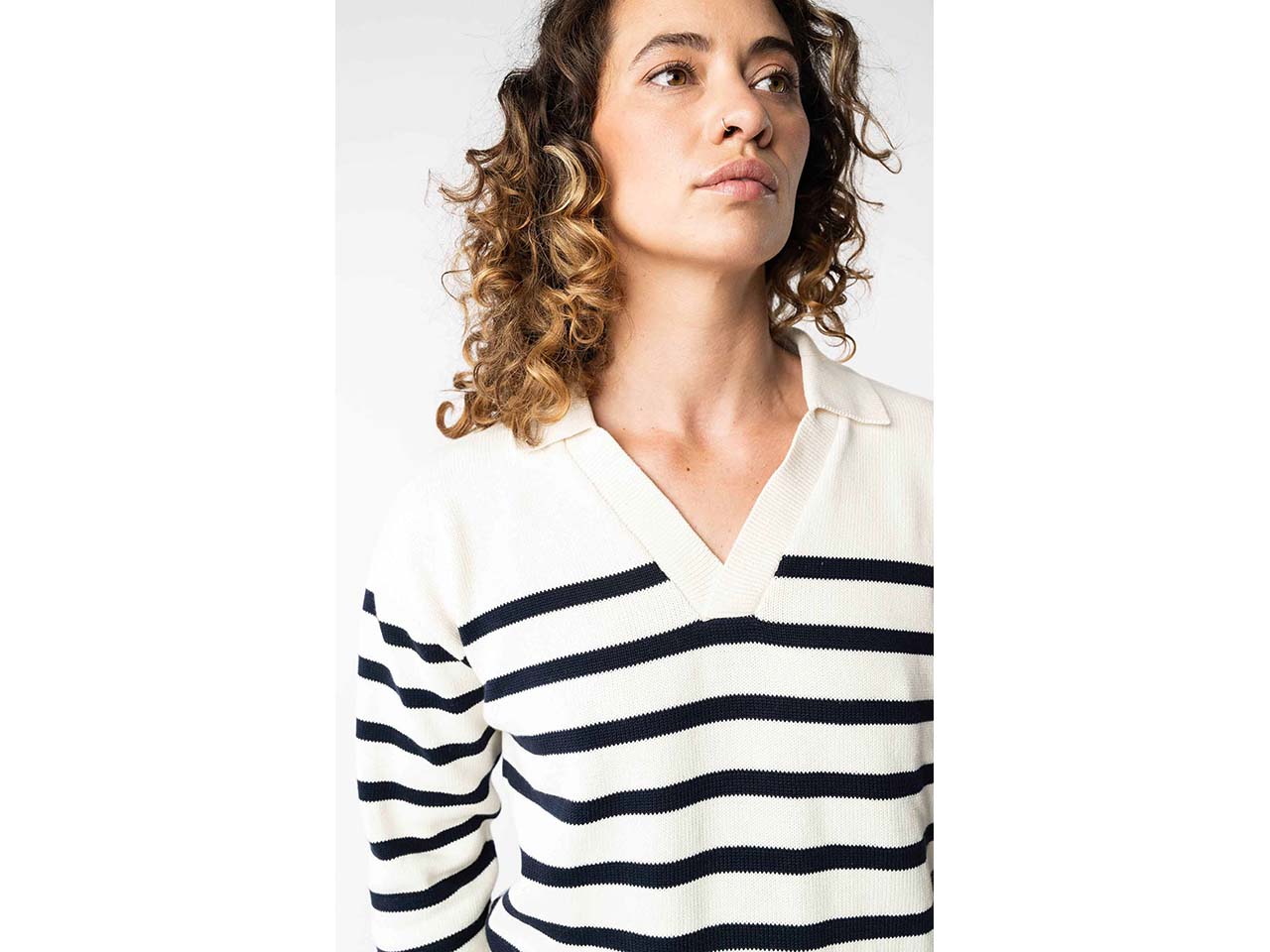 - Strickpulli mit breitem, offenem Kragen
