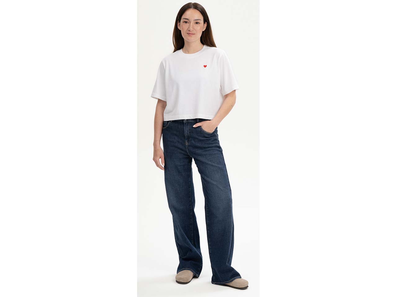 MELA Bio-Damen-T-Shirt "JOSHNA" mit Herz-Stickerei, cropped