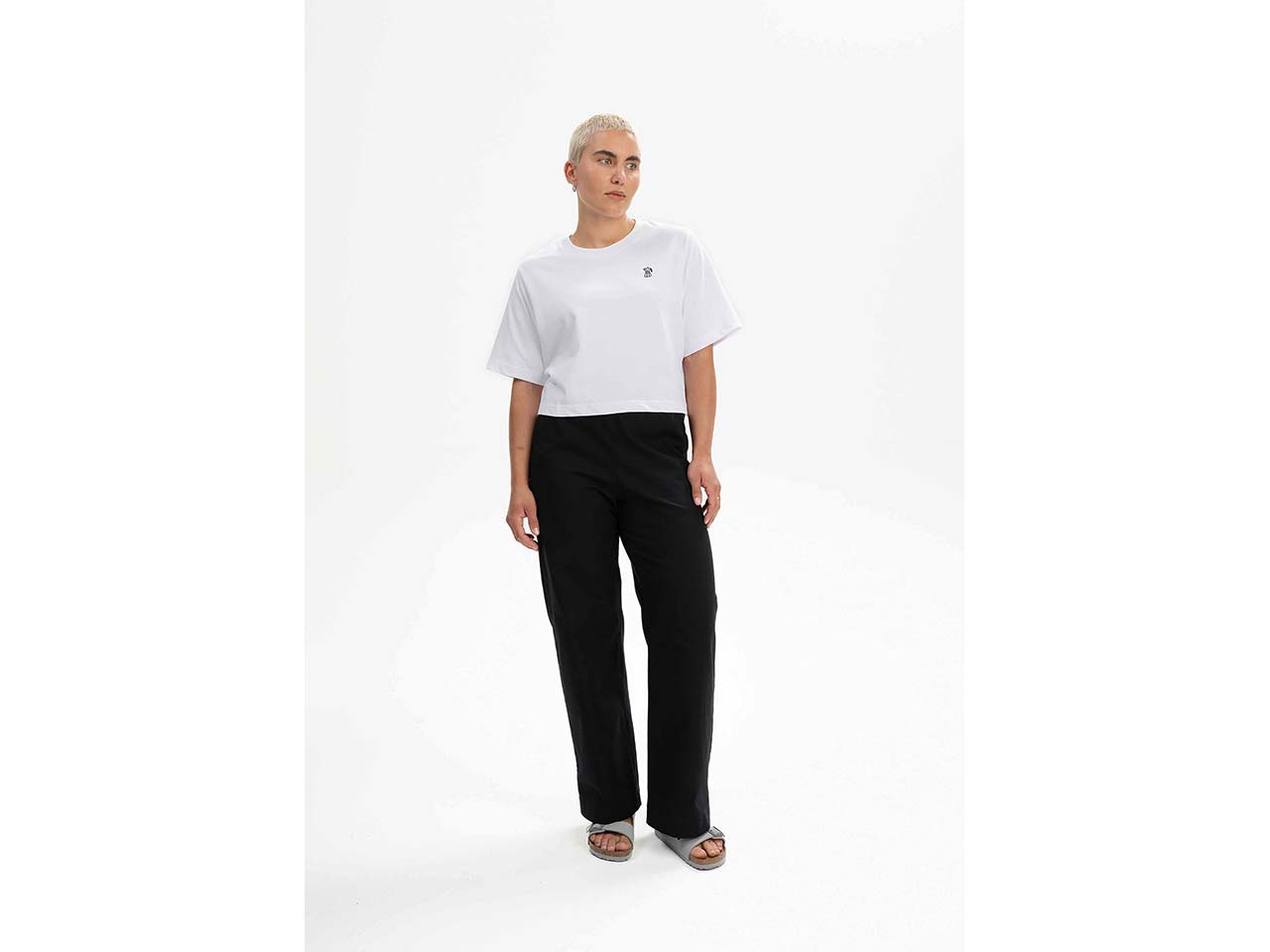 MELA Bio-Damen-T-Shirt "JOSHNA" mit Kaffee-Stickerei, cropped