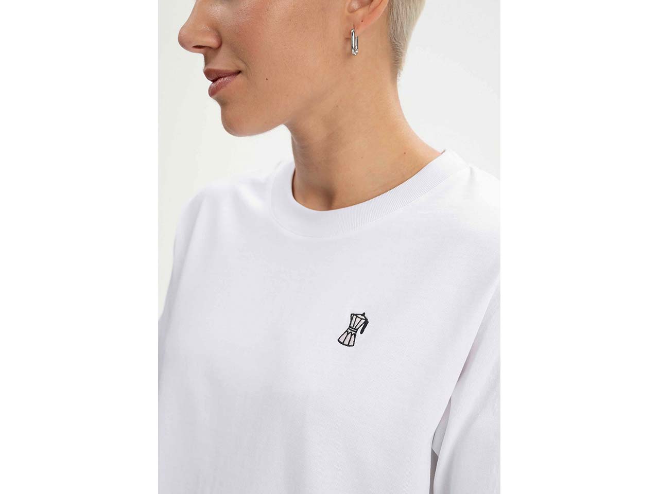 Wenn das Herz für Kaffee schlägt, dann ist dieses T-Shirt perfekt! Das MELA T-Shirt hat auf der Brust eine Baumwollstickerei in Form einer Kaffeekahne. Dadurch erhält das Shirt eine besonders lässige Optik. Zu dieser trägt auch die verkürzte oversized Passform bei. Die Bio-Baumwolle fühlt sich dank Heavy Jersey angenehm schwer und unglaublich weich auf der Haut an. Das Oberteil hat Rippbündchen und einen Rundhalsausschnitt. Da das Textil vorgewaschen ist, bleibt die Form erhalten.