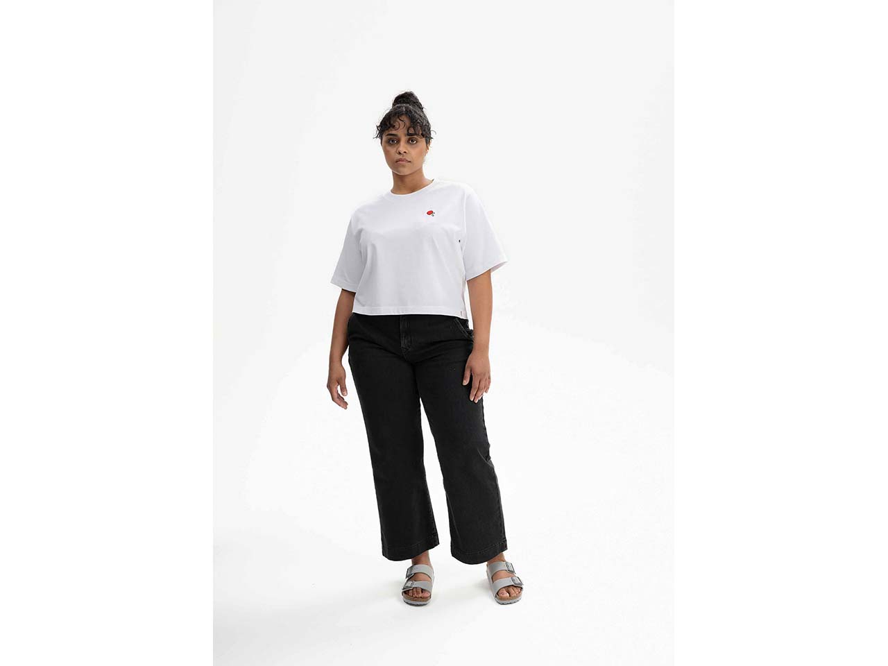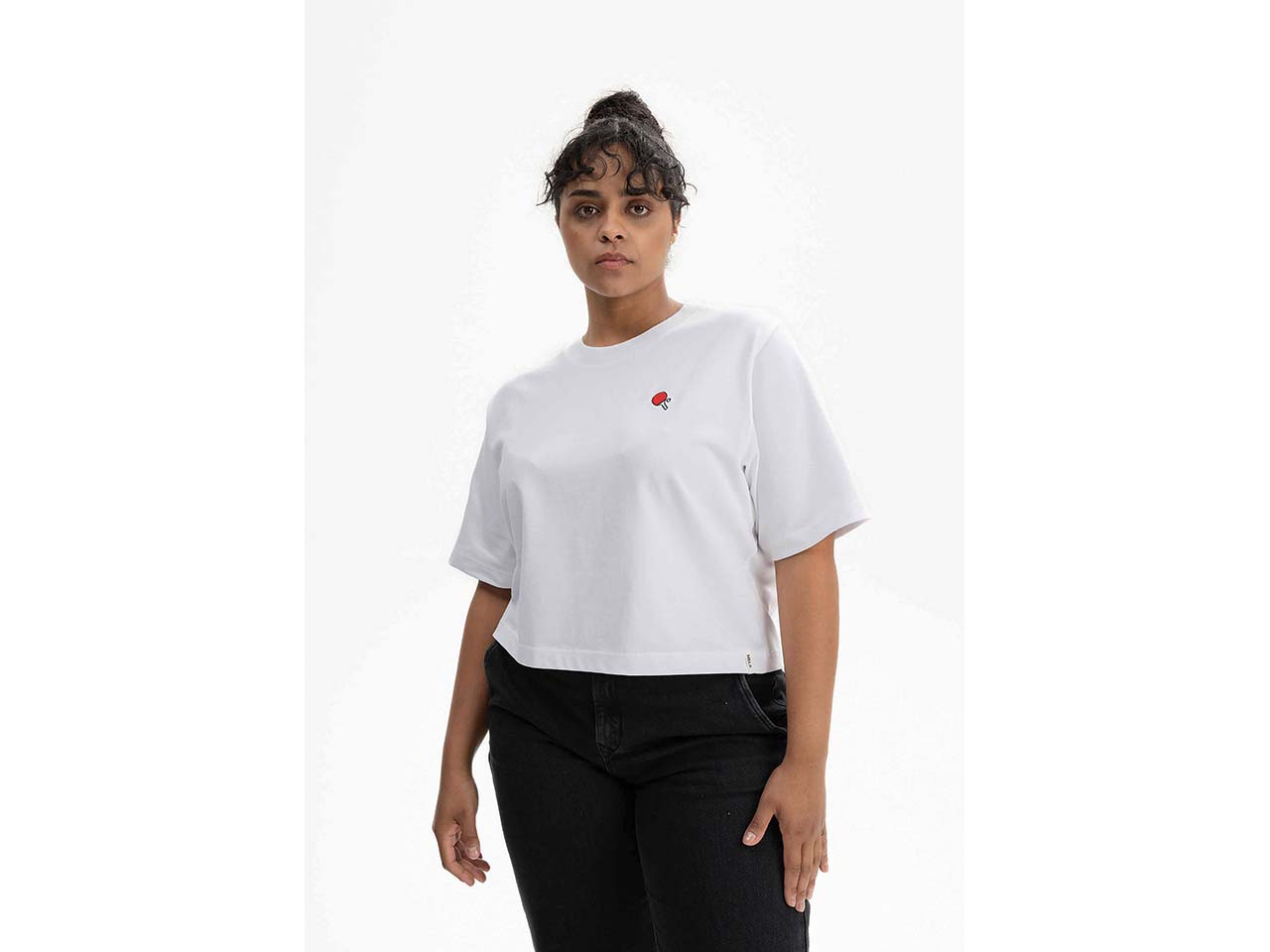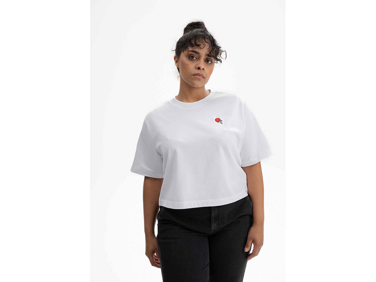 MELA Bio-Damen-T-Shirt "JOSHNA" mit Ping-Pong-Stickerei, cropped
