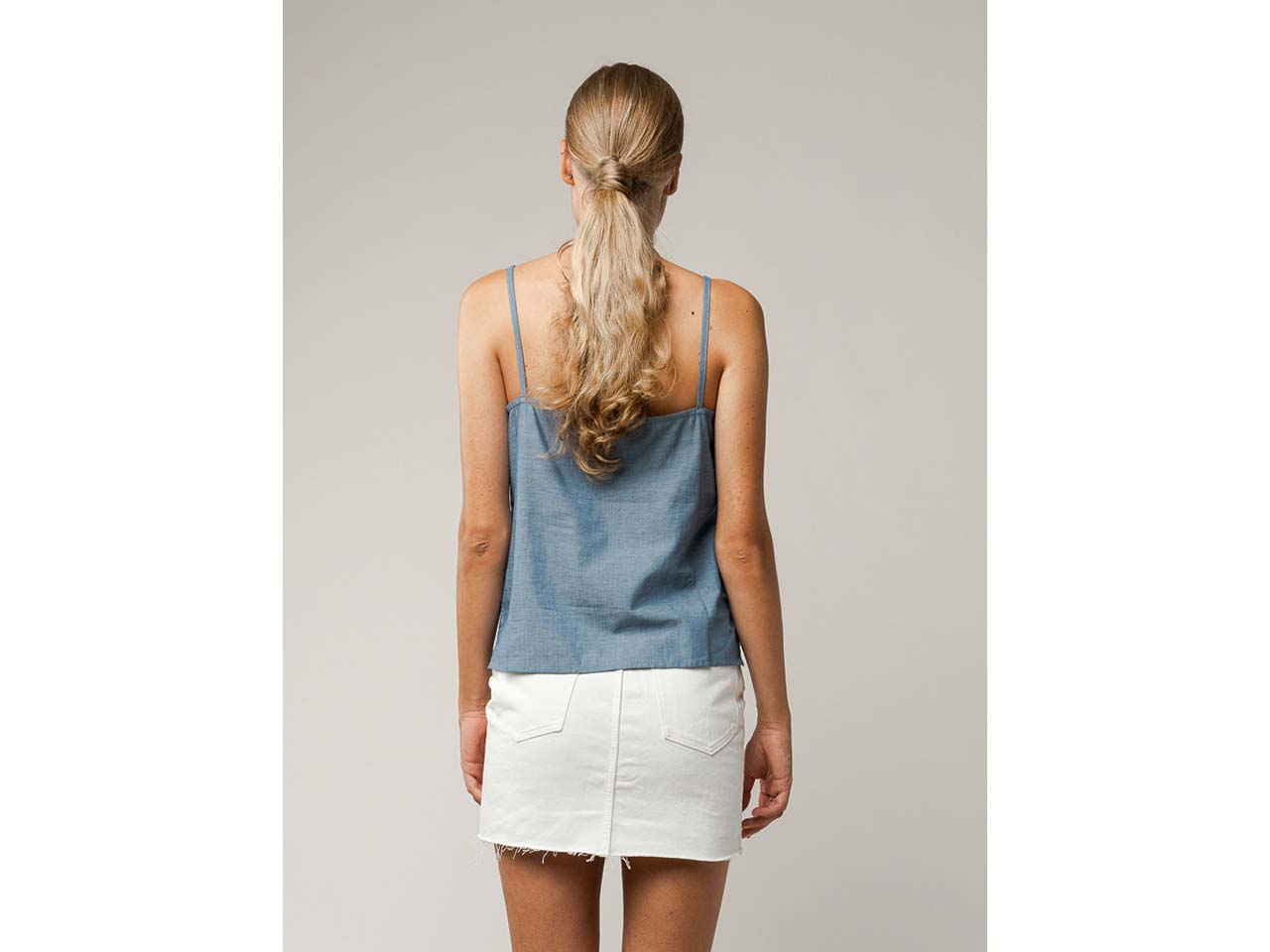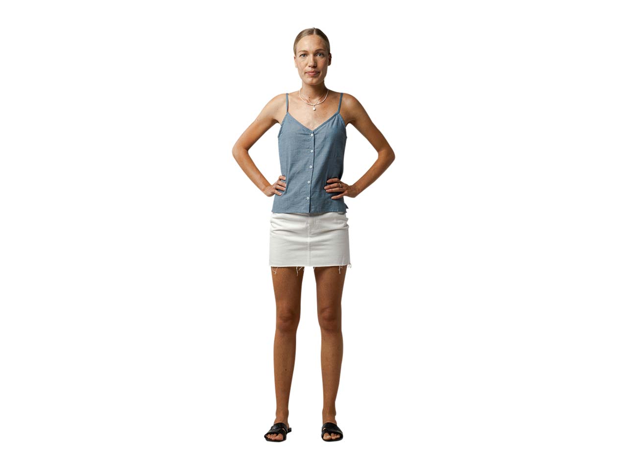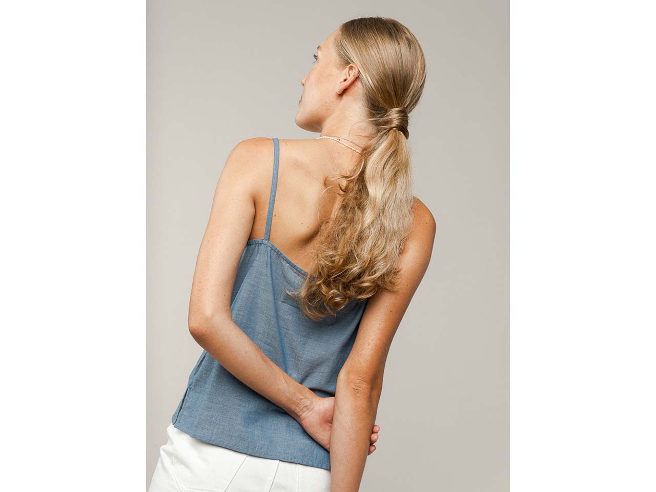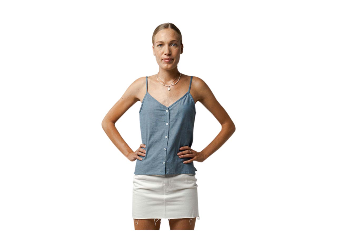 Ein Hauch von verspieltem, sommerlichem Charme macht dieses Oberteil zu etwas ganz Besonderem. Das Top aus gekämmter Bio-Baumwolle in GOTS- und Fairtrade-zertifizierter Qualität ist luftig und fühlt sich angenehm weich auf der Haut an. Die dünnen Träger schneiden nicht ein und unterstreichen den lässigen Look. Modische Highlights sind der V-Ausschnitt und die fortlaufende Knopfleiste, die mit Flussperlmuschel-Knöpfen besetzt ist. Das Damen-Top von MELA ist ein echter Allrounder und passt so zu Röcken, Shorts, Bermudas oder Jeans. Der Stoff ist vorgewaschen, sodass die Passform erhalten bleibt.