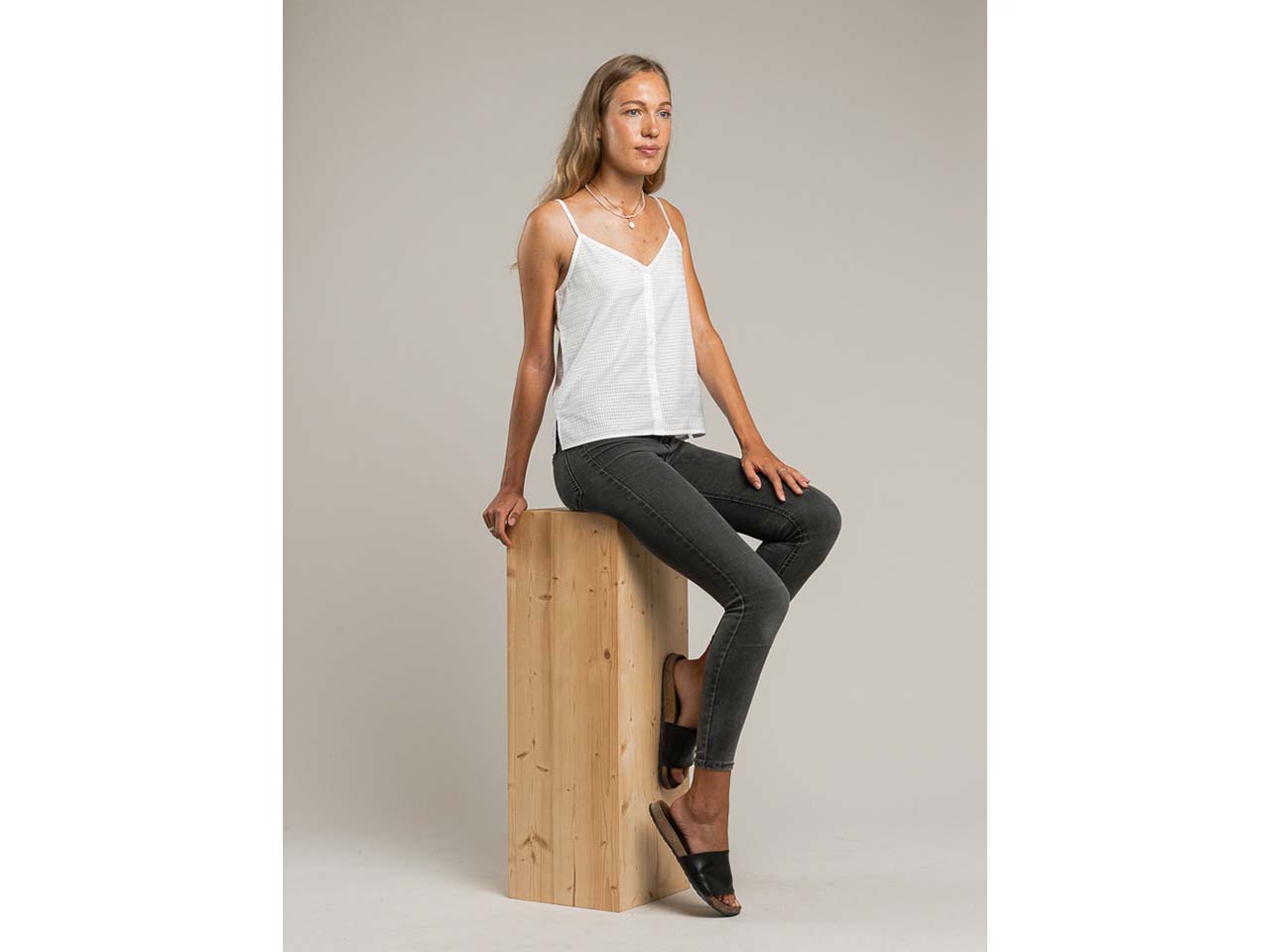 Ein Hauch von verspieltem, sommerlichem Charme macht dieses Oberteil zu etwas ganz Besonderem. Das Top aus gekämmter Bio-Baumwolle in GOTS- und Fairtrade-zertifizierter Qualität ist luftig und fühlt sich angenehm weich auf der Haut an. Die dünnen Träger schneiden nicht ein und unterstreichen den lässigen Look. Modische Highlights sind der V-Ausschnitt und die fortlaufende Knopfleiste, die mit Flussperlmuschel-Knöpfen besetzt ist. Das Damen-Top von MELA ist ein echter Allrounder und passt so zu Röcken, Shorts, Bermudas oder Jeans. Der Stoff ist vorgewaschen, sodass die Passform erhalten bleibt.