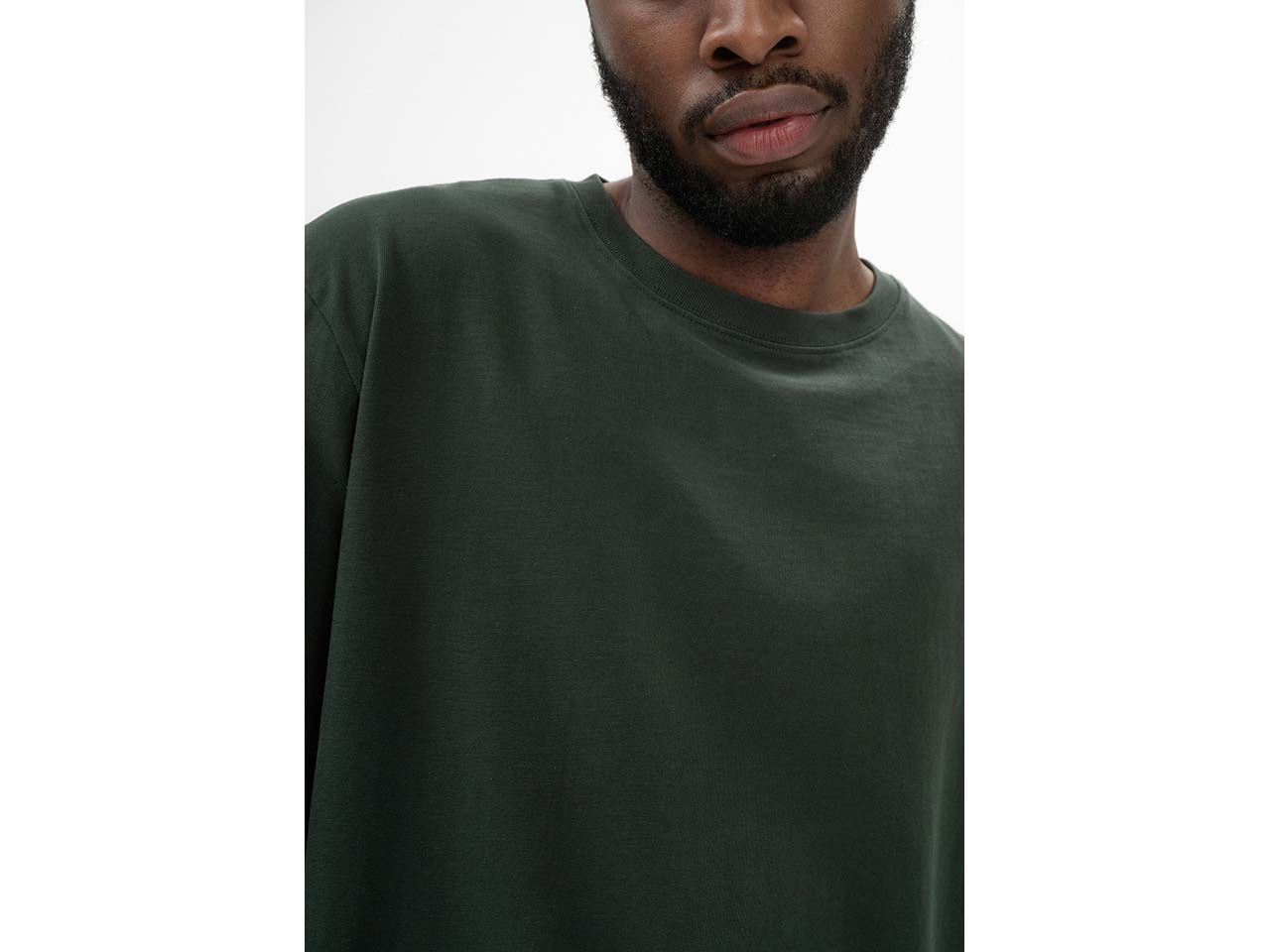 Ein lässiger Begleiter im Oversize-Schnitt für jeden Tag: Das schwere Jersey-T-Shirt mit 260 g/m² besteht aus gekämmter, GOTS-zertifizierter Bio-Baumwolle und fühlt sich wunderbar weich auf der Haut an. Zum hohen Tragekomfort tragen auch die breiten Rippbündchen und der Rundhalsausschnitt bei. Ein modisches Highlight sind die überschnittenen Schultern. Das Textil ist vorgewaschen, damit die Passform erhalten bleibt.