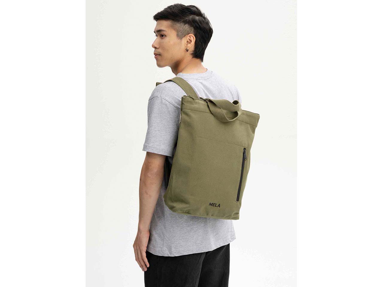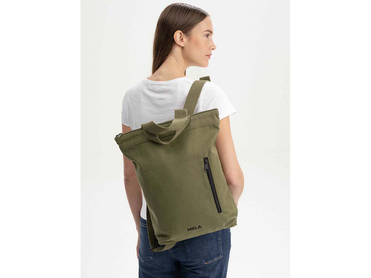 Die perfekte Begleitung für den urbanen Alltag: Der hybride Rucksack von MELA ist gleichzeitig auch eine Umhängetasche! Der Baumwoll-Canvas aus GOTS-zertifizierter Bio-Baumwolle ist natürlich wasserabweisend und außerordentlich robust. Die verstellbaren Schultergurte aus dem gleichen Material sind breit und lassen sich verstellen. Platz für alles Wichtige findet sich im großen Hauptfach sowie der Fronttasche mit Reißverschluss. Die Tasche eignet sich zum Einkaufen, für die Arbeit, die Schule, die Uni und alle Freizeitaktivitäten.