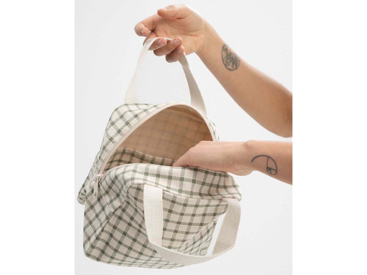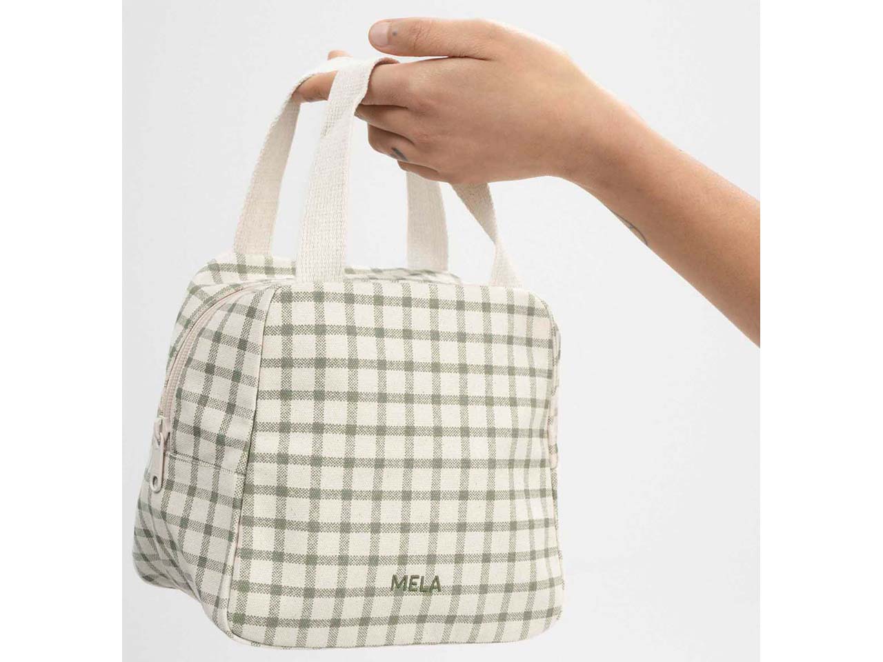 | Farbe: | greige/green grid print |