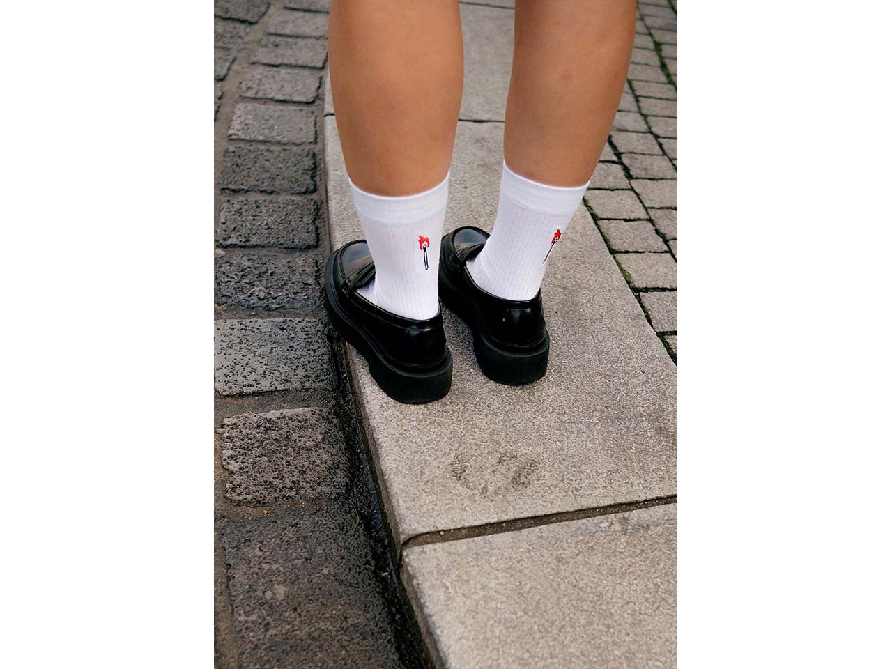 Feuer und Flamme für diese tollen Socken! Die Bio-Baumwollsocken sind nach GOTS, Fairtrade Cotton und dem Grünen Knopf zertifiziert. Sie enthalten einen geringen Anteil Roica-Elasthan, das sich nach Ende des Lebenszyklus zersetzt, ohne Schadstoffe an die Umwelt abzugeben. Die gerippten Socken fühlen sich den ganzen Tag über angenehm weich auf der Haut an. Die Baumwollstickerei in Form eines Streichholzes setzt modische Akzente. Die Socken sind handgekettelt, wodurch ein nahtloses Tragegefühl entsteht.