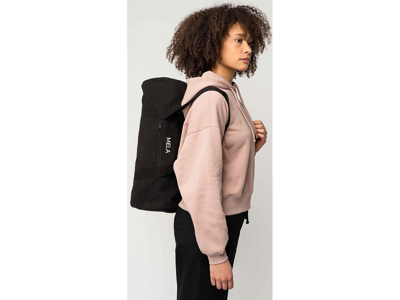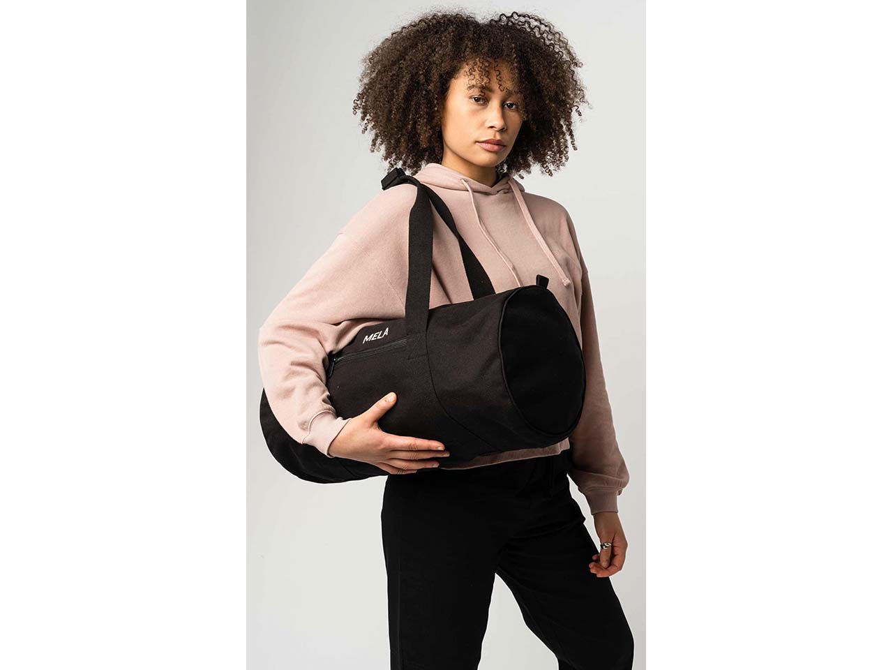 Viel Stauraum und Nachhaltigkeit zeichnen diese coole Sporttasche von MELA aus! Der leicht wasserabweisende Canvas ist aus Fairtrade- und GOTS-zertifizierter Bio-Baumwolle gefertigt, stabil und strapazierfähig. So ist die Tasche ein langlebiger Begleiter zum Sport, zum Yoga oder auch auf Reisen. Die breiten Schultergurte ermöglichen es, die Sporttasche über der Schulter auf dem Rücken zu tragen. Eine kleine Außentasche bietet Platz für Kleinigkeiten.