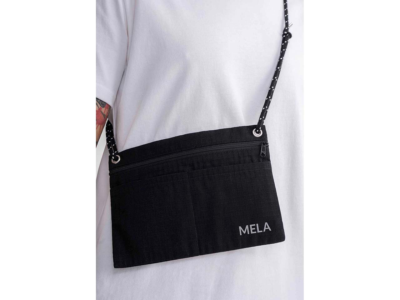 Alles Wichtige dabei – und das ganz ohne große Tasche! Die stylische, sportliche Umhängetasche von MELA ist die perfekte Begleitung für Alltag und Freizeit. Mit der gewebten Kordel sieht sie über die Schulter gehängt auch noch richtig cool aus. Durch das Ripstop-Material aus GOTS- und Fairtrade-zertifizierter Bio-Baumwolle entsteht eine besonders robuste, strapazierfähige Qualität. Schlüssel und Smartphone finden Platz im Reißverschluss-Hauptfach oder der zusätzlichen Außentasche. Der coole MELA-Logo-Print ist reflektierend und entspricht dem GOTS! B 17 x T 25 cm.