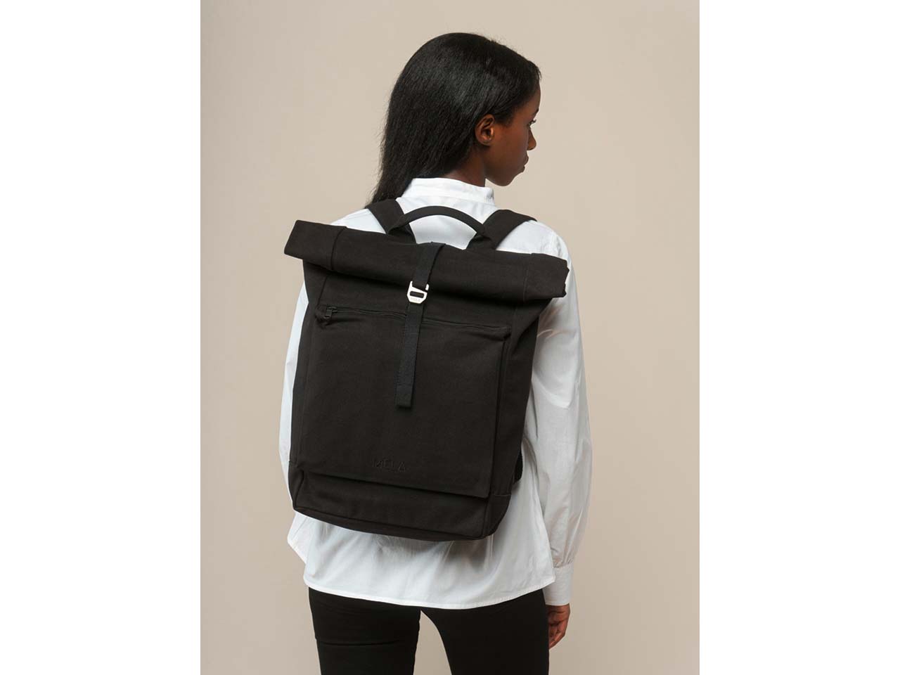 Dieser trendige Minimalist ist die perfekte Begleitung im Alltag, zur Schule oder zur Uni. Mit seiner Rolltop-Funktion ist der MELA "AMAR" besonders praktisch: Das Volumen lässt sich ganz einfach von 15 l um 6 l erweitern! Perfekt, wenn mal mehr mitgenommen werden muss oder es auf Reisen geht. Bei einem modernen Rucksack darf das Laptopfach nicht fehlen. Dieses ist durch ein bequemes Rückenpolster geschützt und bietet Platz für Geräte bis 15". Praktisch: Um an den Laptop zu gelangen, muss nicht erst das Hauptfach geöffnet werden! Das großzügige Hauptfach verfügt wie das Rolltop-System über einen Reißverschluss. Innenfächer für Schlüssel und Handy ermöglichen geordnetes Packen. Der stabile, robuste Baumwoll-Canvas in fester 560 g/m²-Qualität aus GOTS- und Fairtrade-zertifizierter Bio-Baumwolle schützt vor leichtem Regen und trocknet schnell. Die Schultergurte lassen sich individuell anpassen und haben keine losen Bänder!