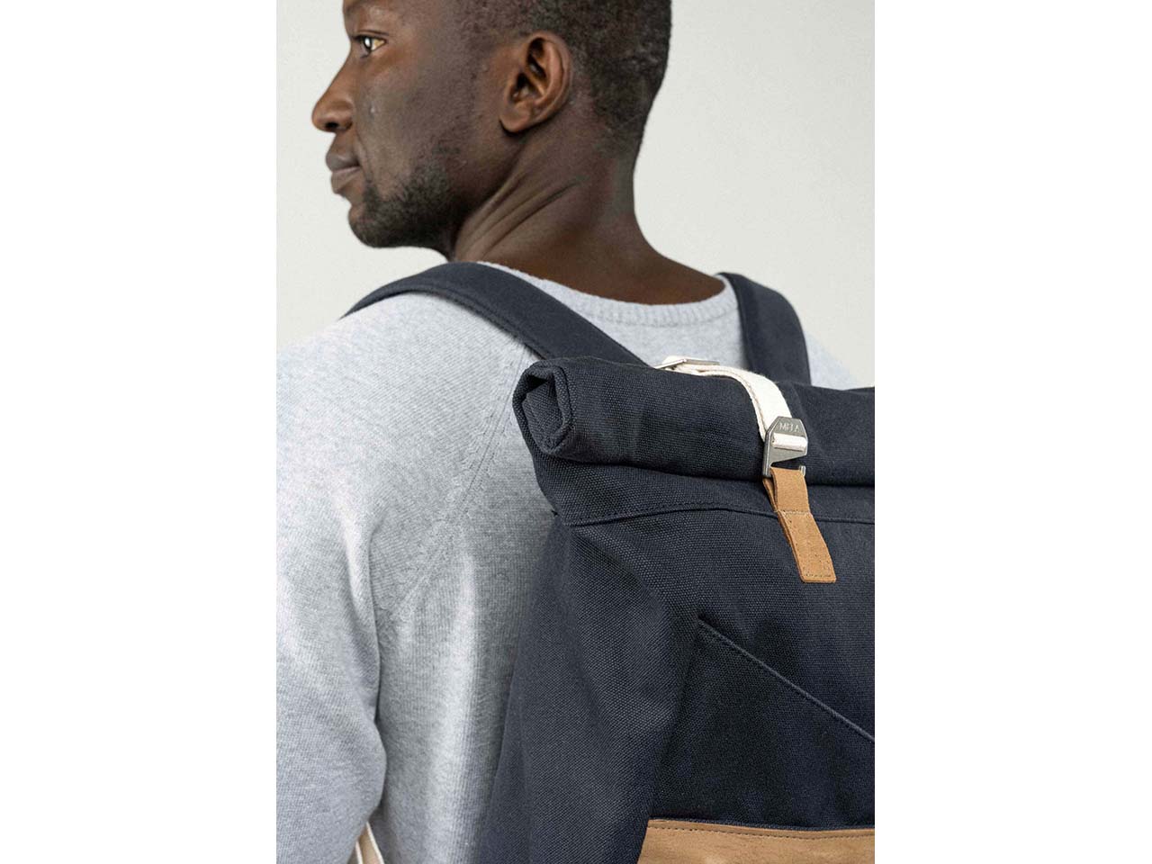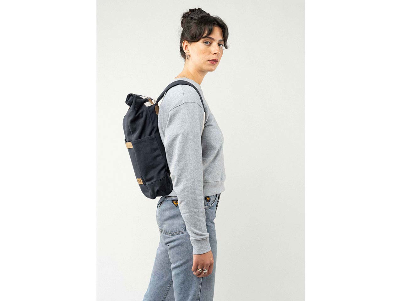 Als erster Rucksack überhaupt ist „Ansvar I“ GOTS- und Fairtrade-zertifiziert! Neben der nachhaltigen Herstellung punktet er aber auch noch mit seinem hohen Tragekomfort und dem urbanen, praktischen Design. Ob auf dem Weg zur Arbeit, zur Schule, in die Uni, in der Freizeit oder im Alltag, der Rucksack ist die perfekte Begleitung. Immer passend: Einfaches Ein- und Ausrollen variiert das Volumen zwischen 14 und 19 Litern. So lassen sich je nach Bedarf Bücher, Unterlagen, Einkäufe und mehr unterbringen. Die extra breiten, individuell verstellbaren Tragegurte und die Rückenpolsterung sorgen dafür, dass sich der Rucksack immer komfortabel trägt. Bei jedem Wetter: Der verwendete Canvasstoff ist nicht nur robust, sondern auch wasserabweisend und schnelltrocknend. Besonders praktisch ist das abgetrennte Fach für ein 15“-Notebook im Innenraum, das durch die Rückenverstärkung etwas gepolstert ist und so Schutz für technische Geräte bietet. Ein sicheres, mit Lederzierblende verdecktes Reißverschlussfach, ein Einsteckfach für 0,5 l Trinkflaschen, ein Zeitschriftenfach sowie ein Fach für Zubehör wie Schlüssel, Smartphone und mehr runden den Rucksack ab. B 28 x T 12 x H 40-56 cm.