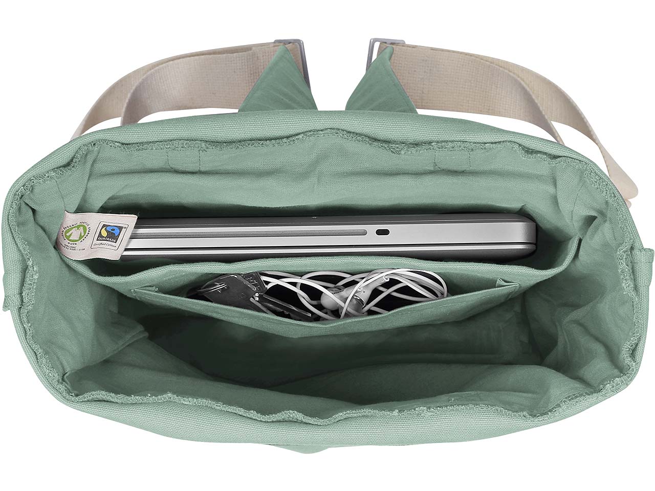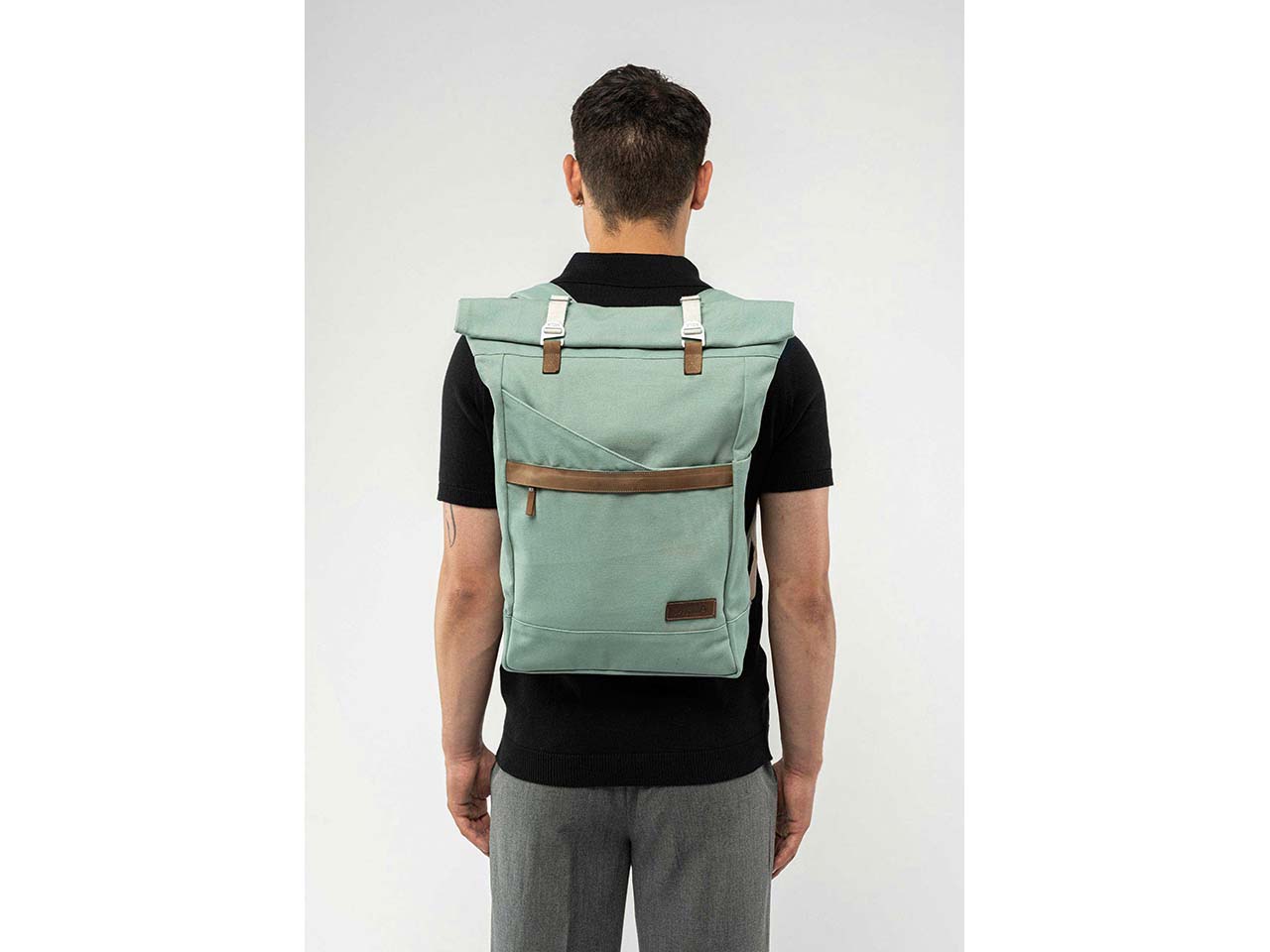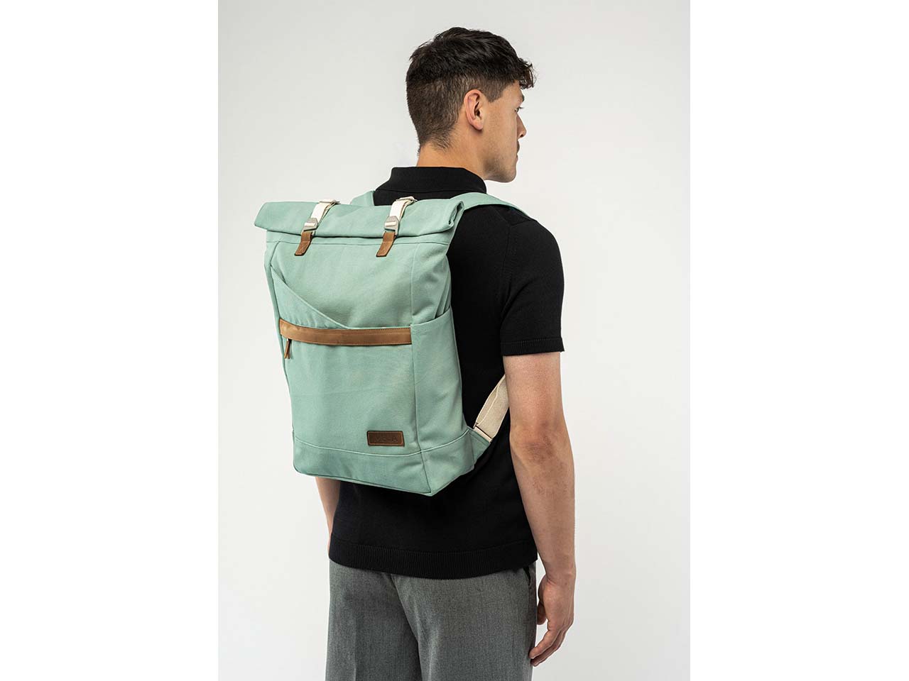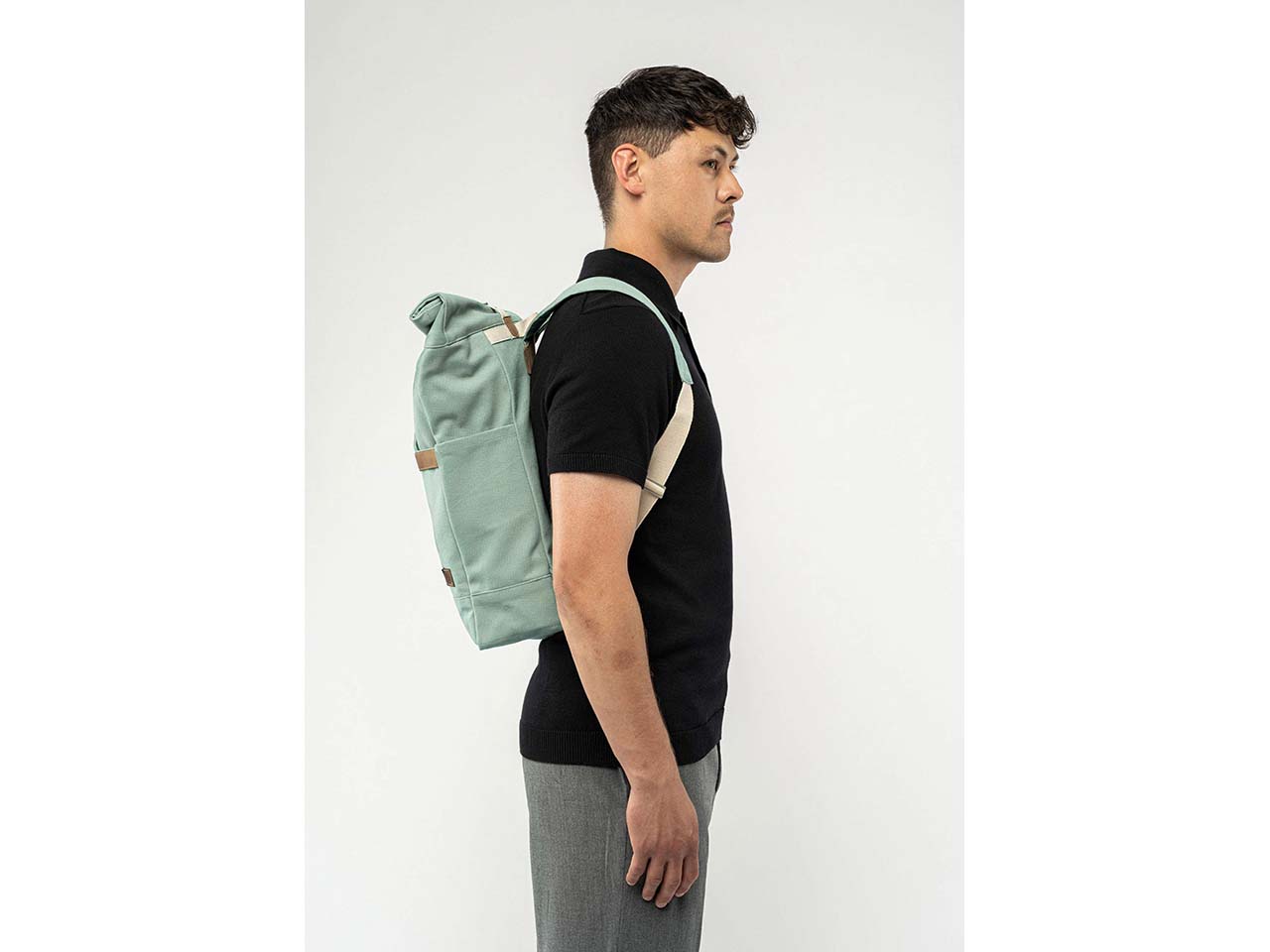 Als erster Rucksack überhaupt ist „Ansvar I“ GOTS- und Fairtrade-zertifiziert! Neben der nachhaltigen Herstellung punktet er aber auch noch mit seinem hohen Tragekomfort und dem urbanen, praktischen Design. Ob auf dem Weg zur Arbeit, zur Schule, in die Uni, in der Freizeit oder im Alltag, der Rucksack ist die perfekte Begleitung. Immer passend: Einfaches Ein- und Ausrollen variiert das Volumen zwischen 14 und 19 Litern. So lassen sich je nach Bedarf Bücher, Unterlagen, Einkäufe und mehr unterbringen. Die extra breiten, individuell verstellbaren Tragegurte und die Rückenpolsterung sorgen dafür, dass sich der Rucksack immer komfortabel trägt. Bei jedem Wetter: Der verwendete Canvasstoff ist nicht nur robust, sondern auch wasserabweisend und schnelltrocknend. Besonders praktisch ist das abgetrennte Fach für ein 15“-Notebook im Innenraum, das durch die Rückenverstärkung etwas gepolstert ist und so Schutz für technische Geräte bietet. Ein sicheres, mit Lederzierblende verdecktes Reißverschlussfach, ein Einsteckfach für 0,5 l Trinkflaschen, ein Zeitschriftenfach sowie ein Fach für Zubehör wie Schlüssel, Smartphone und mehr runden den Rucksack ab. B 28 x T 12 x H 40-56 cm.