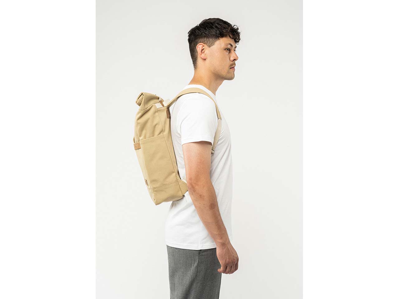 Als erster Rucksack überhaupt ist „Ansvar I“ GOTS- und Fairtrade-zertifiziert! Neben der nachhaltigen Herstellung punktet er aber auch noch mit seinem hohen Tragekomfort und dem urbanen, praktischen Design. Ob auf dem Weg zur Arbeit, zur Schule, in die Uni, in der Freizeit oder im Alltag, der Rucksack ist die perfekte Begleitung. Immer passend: Einfaches Ein- und Ausrollen variiert das Volumen zwischen 14 und 19 Litern. So lassen sich je nach Bedarf Bücher, Unterlagen, Einkäufe und mehr unterbringen. Die extra breiten, individuell verstellbaren Tragegurte und die Rückenpolsterung sorgen dafür, dass sich der Rucksack immer komfortabel trägt. Bei jedem Wetter: Der verwendete Canvasstoff ist nicht nur robust, sondern auch wasserabweisend und schnelltrocknend. Besonders praktisch ist das abgetrennte Fach für ein 15“-Notebook im Innenraum, das durch die Rückenverstärkung etwas gepolstert ist und so Schutz für technische Geräte bietet. Ein sicheres, mit Lederzierblende verdecktes Reißverschlussfach, ein Einsteckfach für 0,5 l Trinkflaschen, ein Zeitschriftenfach sowie ein Fach für Zubehör wie Schlüssel, Smartphone und mehr runden den Rucksack ab. B 28 x T 12 x H 40-56 cm.