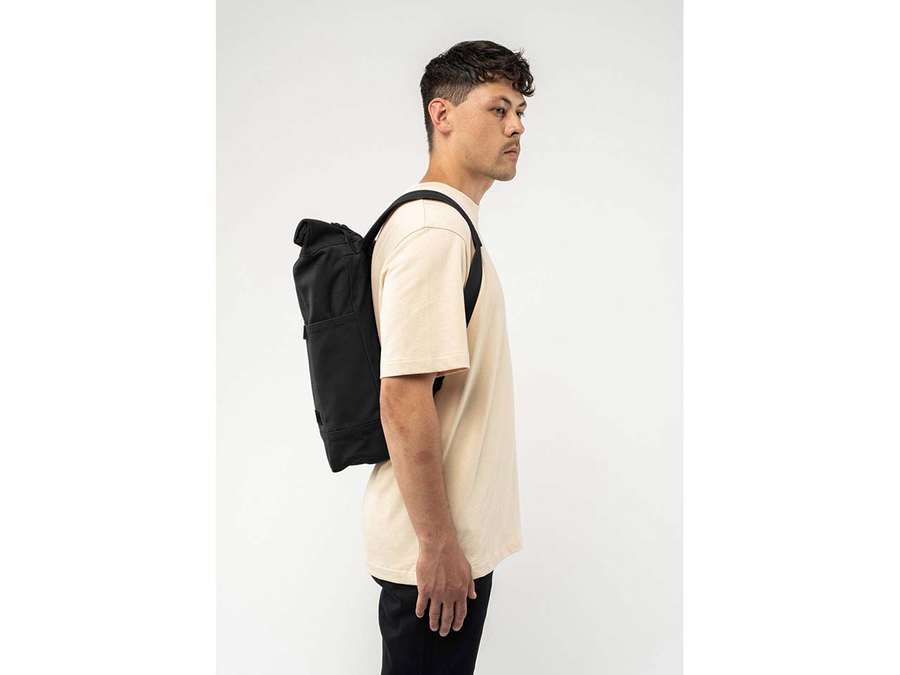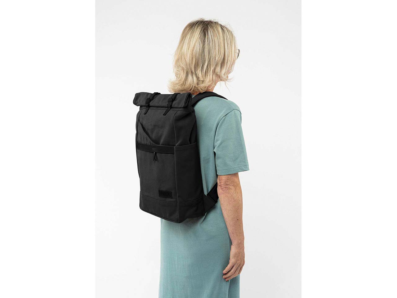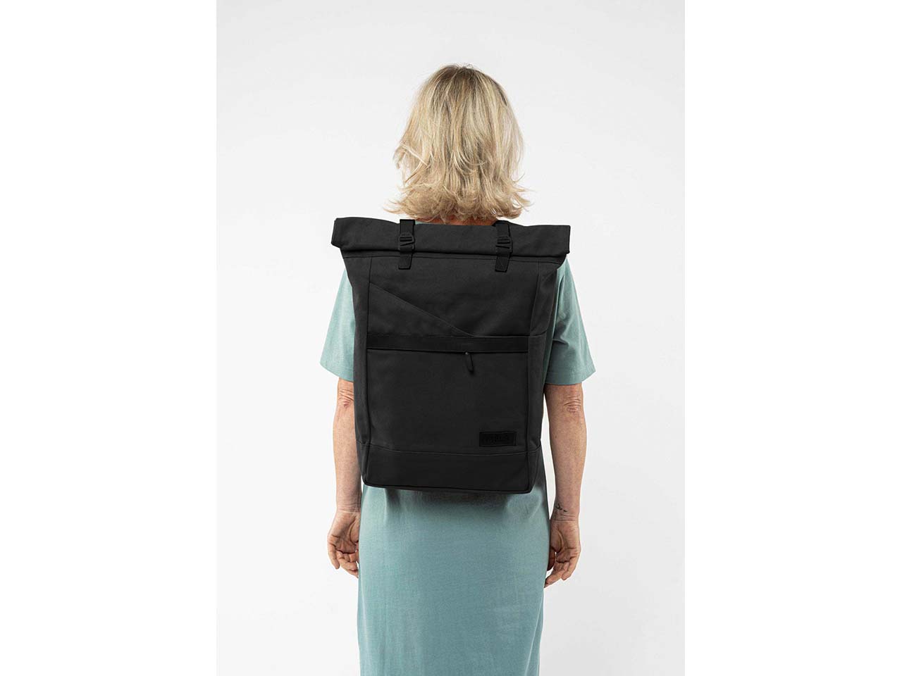 Als erster Rucksack überhaupt ist „Ansvar I“ GOTS- und Fairtrade-zertifiziert – und jetzt auch in vegan erhältlich! Neben der nachhaltigen Herstellung punktet er aber auch noch mit seinem hohen Tragekomfort und dem urbanen, praktischen Design. Ob auf dem Weg zur Arbeit, zur Schule, in die Uni, in der Freizeit oder im Alltag, der Rucksack ist die perfekte Begleitung. Immer passend: Einfaches Ein- und Ausrollen variiert das Volumen zwischen 14 und 19 Litern. So lassen sich je nach Bedarf Bücher, Unterlagen, Einkäufe und mehr unterbringen. Die extra breiten, individuell verstellbaren Tragegurte und die Rückenpolsterung sorgen dafür, dass sich der Rucksack immer komfortabel trägt. Bei jedem Wetter: Der verwendete Canvasstoff ist nicht nur robust, sondern auch wasserabweisend und schnelltrocknend. Besonders praktisch ist das abgetrennte Fach für ein 15“-Notebook im Innenraum, das durch die Rückenverstärkung etwas gepolstert ist und so Schutz für technische Geräte bietet. Ein Reißverschlussfach, ein Einsteckfach für 0,5 l Trinkflaschen, ein Zeitschriftenfach sowie ein Fach für Zubehör wie Schlüssel, Smartphone und mehr runden den Rucksack ab. Durch den Verzicht auf Lederpatches ist der Rucksack für einen veganen Lebensstil geeignet. B 28 x T 12 x H 40-56 cm.