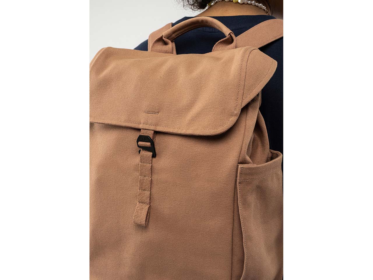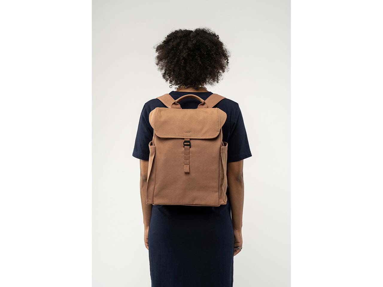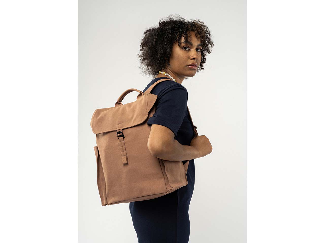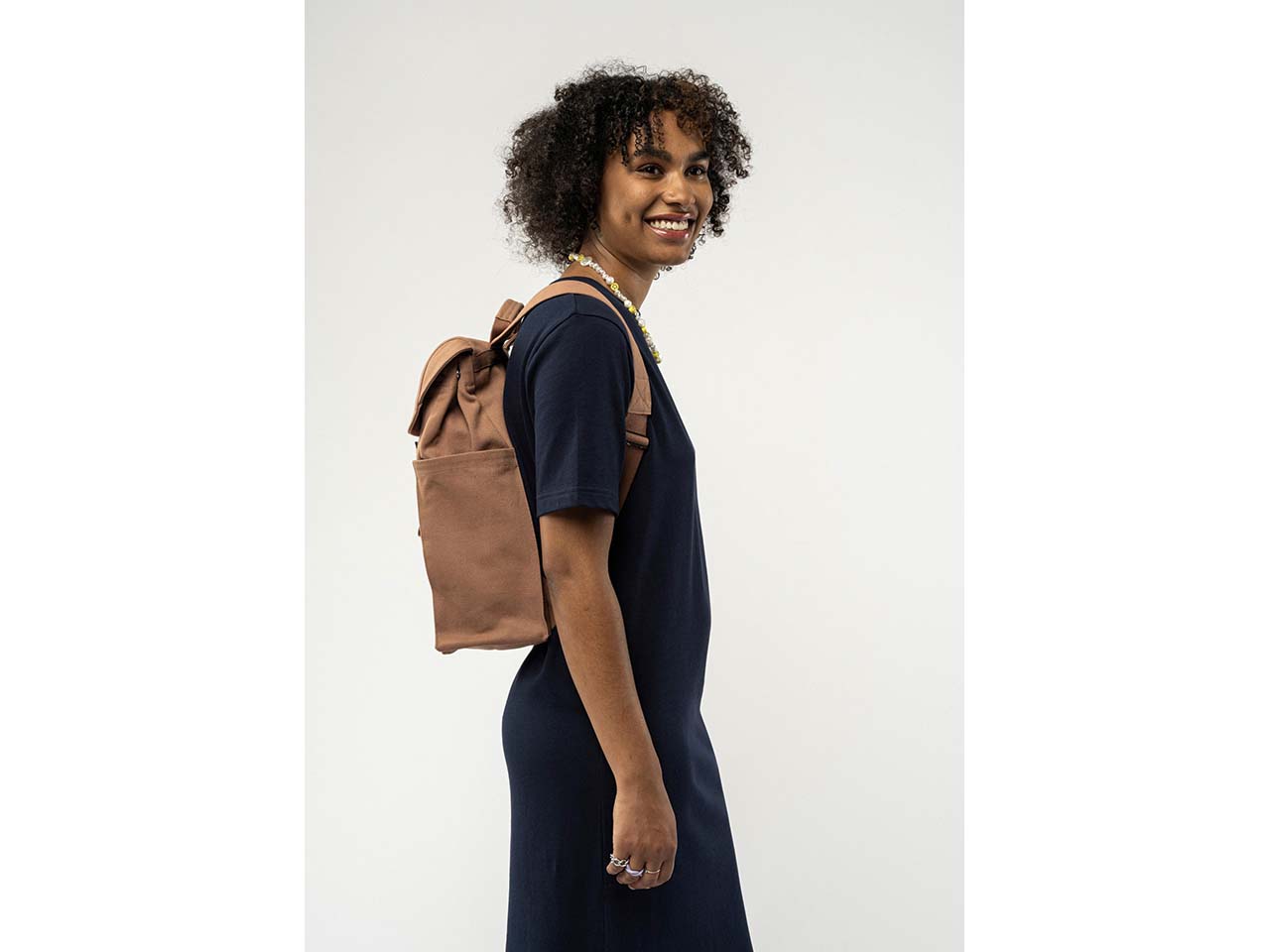 Sieht cool aus und ist eine perfekte Begleitung, wenn es zur Schule, zur Arbeit oder zur Uni geht: Der urbane Rucksack von MELA zeigt, dass Nachhaltigkeit und modernes Design ein exzellentes Team sind. Gefertigt ist der lässige Klassiker aus GOTS- und Fairtrade-zertifiziertem Bio-Baumwoll-Canvas, das so dicht gewebt ist, dass selbst leichter Regen kein Problem ist. Wird der Rucksack einmal nass, trocknet das Material auch schnell wieder. Dazu kommen nickel- und chromfreie Schnallen und Reißverschlüsse. Auf Lederpatches und ähnliches wurde verzichtet, sodass sich der Rucksack auch für einen veganen Lifestyle eignet. Die Funktionalität kommt nicht zu kurz: Ein abgetrenntes Laptopfach bietet Platz für Geräte zwischen 13“ und 15“. In der Zubehörtasche sind Kleinteile wie Handy, Schlüssel oder Snacks optimal aufbewahrt. Die zwei seitlichen Trinkflaschenfächer lassen sich sogar in der Größe verstellen. Das Beste: Unter der Klappe auf der Vorderseite befindet sich ein sicheres Reißverschlussfach für alles Wichtige. Die extra breiten Schultergurte bieten maximalen Komfort beim Tragen und lassen sich ganz ohne lose Bänder verstellen. Der Rucksack hat ein Volumen von 13,5 l. B 26 x T 14 x H 37 cm.