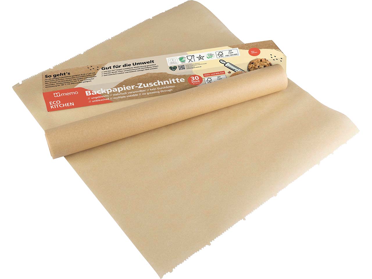 Kein Einfetten des Blechs notwendig: Um Pizza, Kuchen und Co. im Backofen zuzubereiten, sind diese fettdichten Backpapier-Zuschnitte einfach perfekt! Das in Deutschland hergestellte Backpapier ist nach ökologischen Gesichtspunkten entwickelt und nach FSC sowie dem Nordic Swan zertifiziert. Es ist ungebleicht und beidseitig silikonbeschichtet, sodass es zu keinem Anheften kommt. Die Zuschnitte eignen sich für alle gängigen Backbleche und sind bis 220 °C hitzebeständig (bei Mehrfachnutzung bis 180 °C). Sie können auch in der Mikrowelle eingesetzt werden! Das Beste: Das praktisch vorgeschnittene Backpapier ist mehrfach verwendbar.