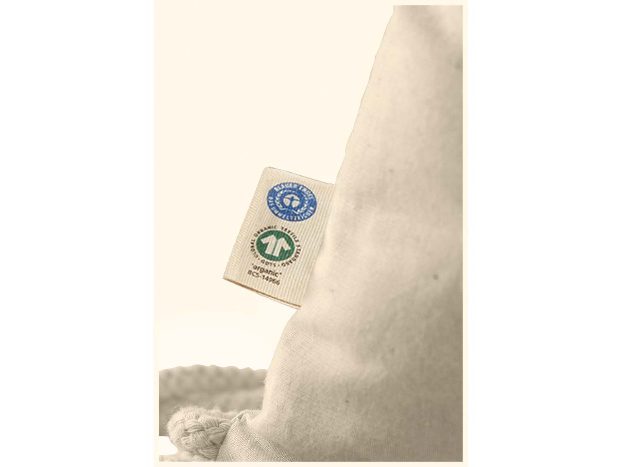 Das Produkt besteht zu 100 % aus zertifizierter Bio-Baumwolle und erfüllt die Standards des Global Organic Textil Standard (GOTS), Fairtrade Cotton und des Grünen Knopfs. Die Siegel sichern die biologisch kontrollierte Herkunft der Baumwolle ab und minimieren soziale Risiken wie Kinder- und Zwangsarbeit, Menschenrechtsverletzungen, Diskriminierung und ungerechte Entlohnung. Bei der Herstellung wird zum Großteil auf regenerative Energien gesetzt (z.B. Sonnenergie), die kontinuierlich weiter ausgebaut werden.