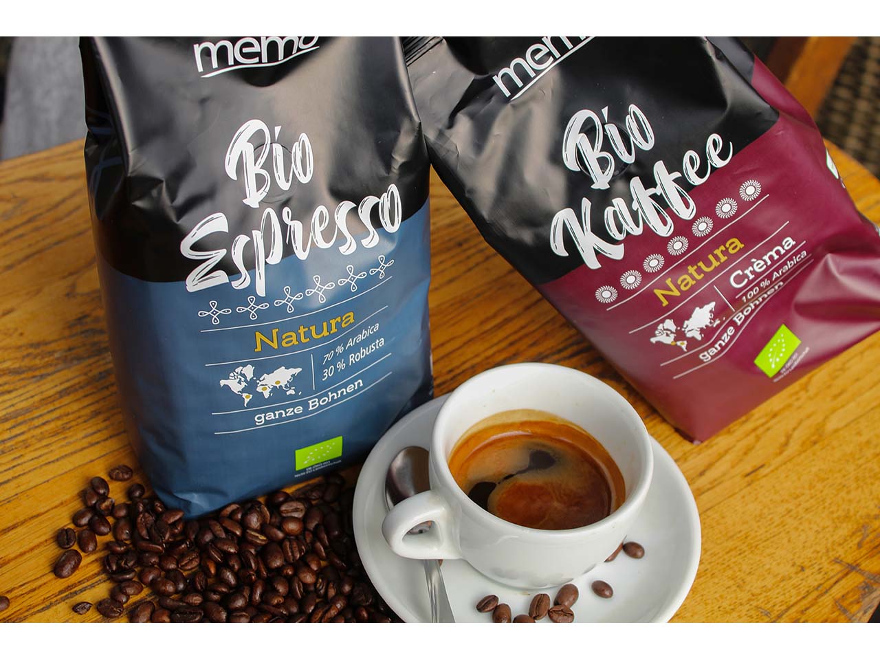 Die Bohnen für den Bio-Espresso werden nach den Vorgaben der EG-Öko-Verordnung in Südamerika, Afrika und Indien kontrolliert biologisch angebaut. Die hochwertige Arabicabohne zeichnet sich durch feinen Geschmack und geringeren Koffeingehalt aus. Zu 30 % besteht der Espresso aus Robusta. Diese gibt ihm eine satte Crema und den typisch kräftigen Geschmack.