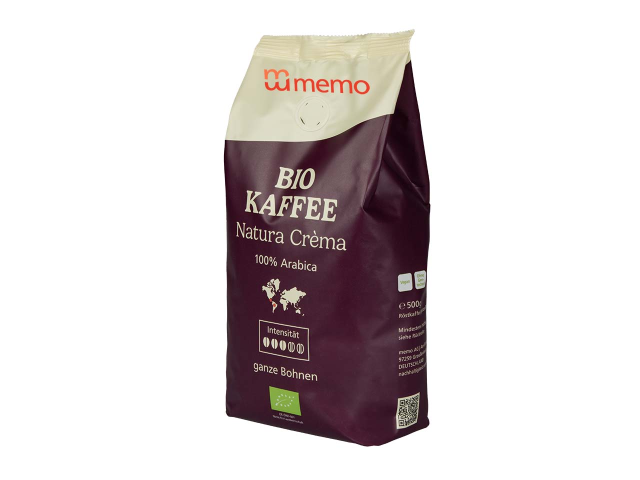 memo Bio-Kaffee Crema "Natura" ganze Bohnen