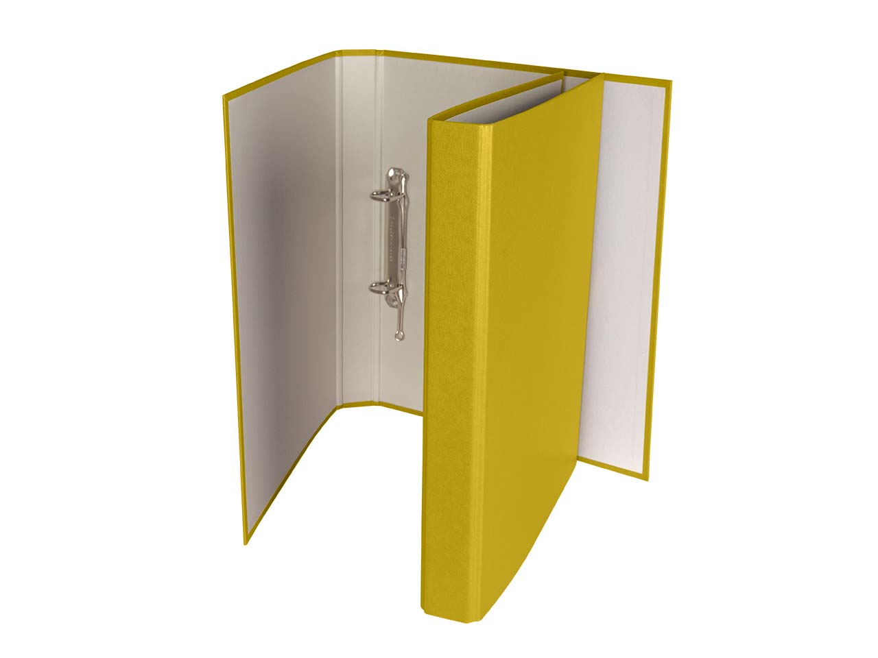 Ringbuch aus Recyclingmaterial, strapazierfähig und mit stabiler 2-Ring-Mechanik. Ausgezeichnet mit dem Blauen Engel. Für Format DIN A4. B 27,5 x T 31,5 cm. Rückenbreite 3 cm. Farbe gelb.