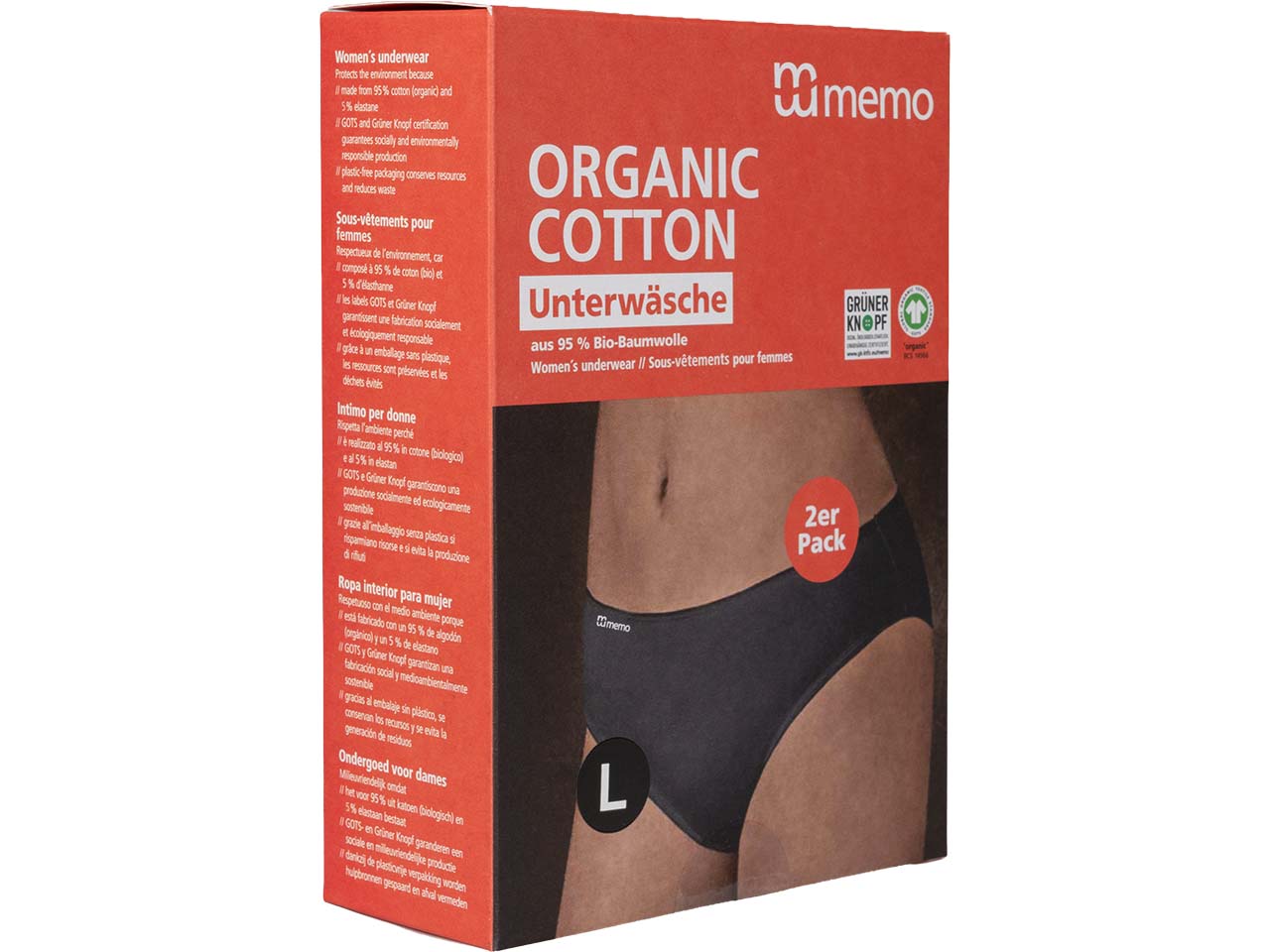 memo Damen-Slips aus Bio-Baumwolle, 2er Pack