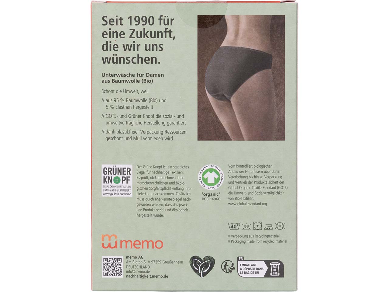 memo Damen-Slips aus Bio-Baumwolle, 2er Pack
