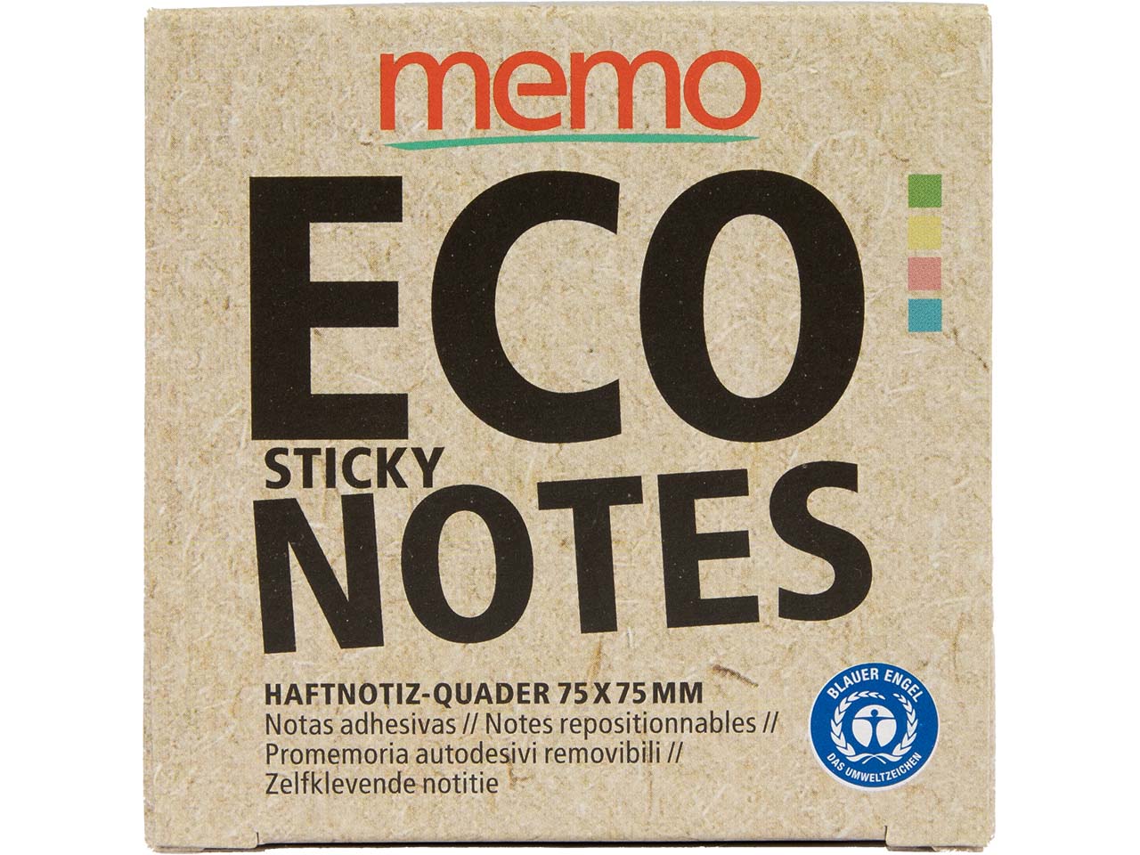 memo Haftnotiz-Quader 75 x 75 mm, farbig sortiert im Recyclingkarton