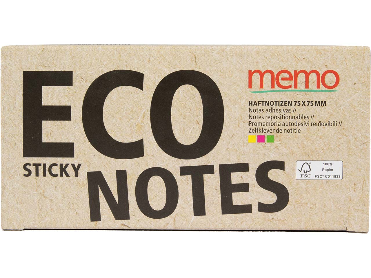 memo Haftnotizen 75 x 75 mm, 3 x 2 Blöcke im Recyclingkarton