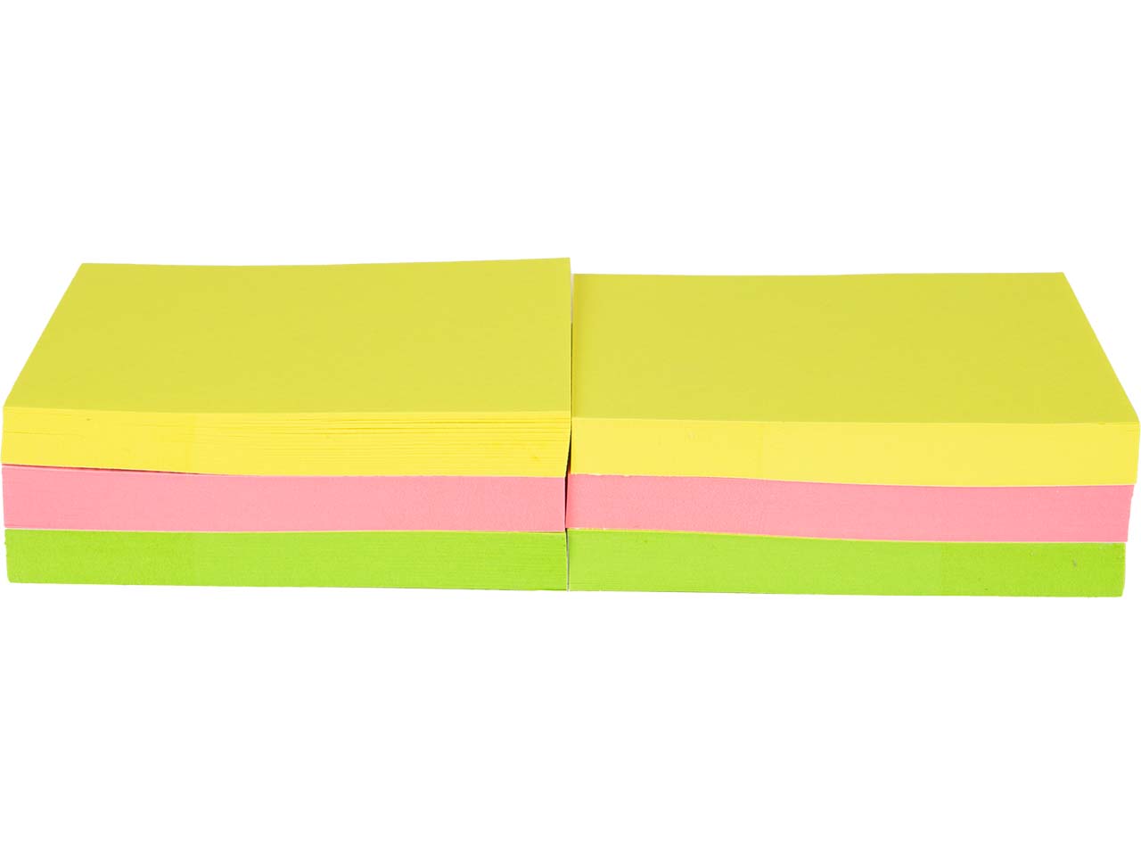 Diese klassischen Notizblöcke sollten in keinem Büro fehlen: Mit diesen farbenfrohen FSC-zertifizierten memo Notizzetteln können ganz einfach und schnell wichtige Gedanken und Mitschriften festgehalten werden. Die Notizzettel sind vielseitig einsetzbar, da sie selbstklebend, ablösbar und beschriftbar sind. Somit können wichtige aufgeschriebene Details einfach am Laptop, Desktop und sonstigen Gegenständen festgeklebt werden und geraten dadurch nicht in Vergessenheit. Das Besondere an diesem Produkt: Im Gegensatz zu anderen Fabrikaten ist der Kleber auf Wasserbasis hergestellt und frei von Lösemitteln ist. So hinterlässt er keine Rückstände auf den Gegenständen und garantiert dennoch eine sehr gute Haftung. Grammatur 70 g/m². Farben: gelb, pink, grün. B 75 x H 75 mm. 1 Pack = Je Farbe 3 x 2 Blöcke.