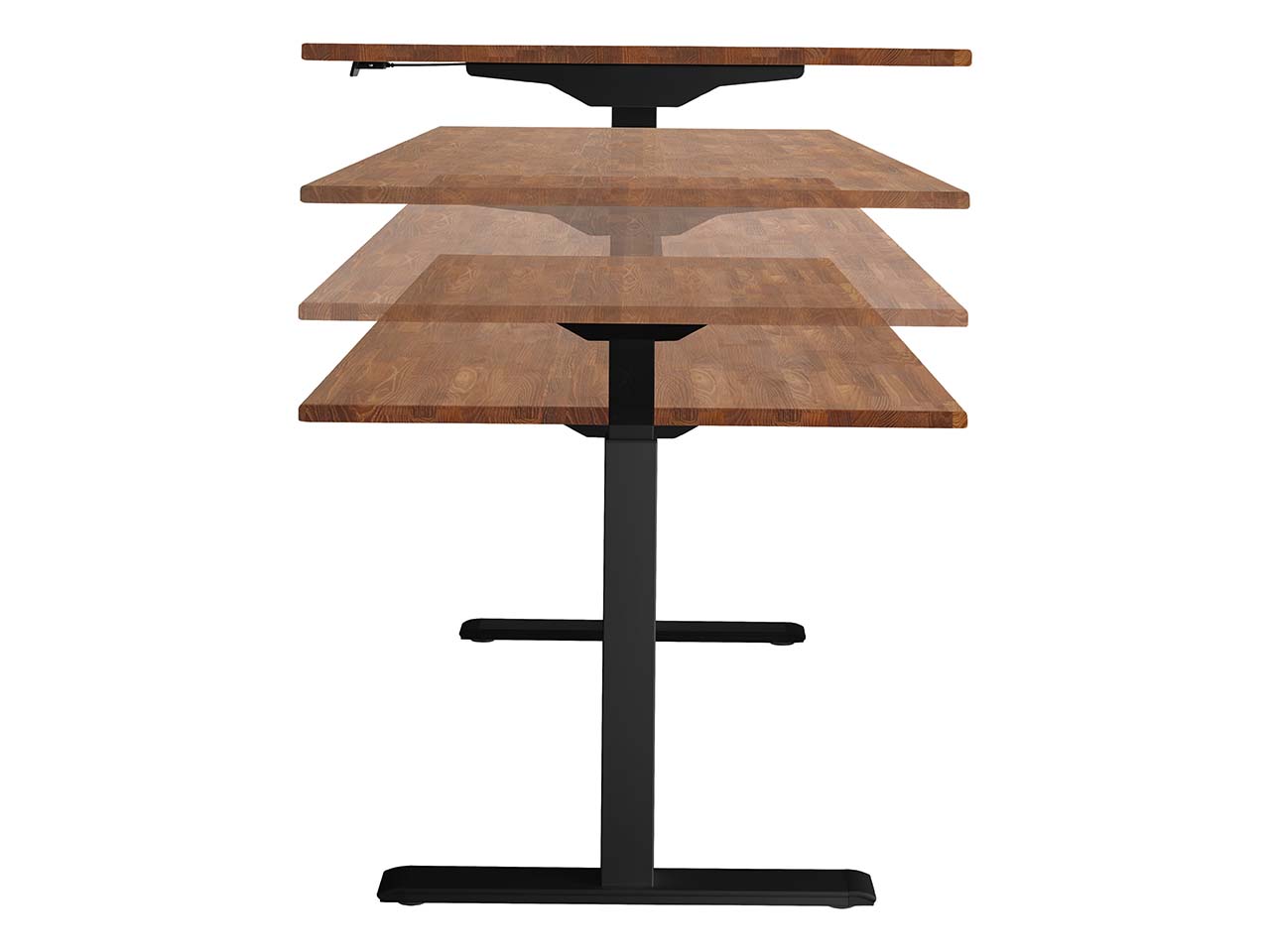 Ob im Büro oder im Home Office, eine ergonomische Arbeitsplatzgestaltung trägt zur fokussierten Arbeit bei. Dieser Sitz- und Stehtisch gehört daher zur Grundausstattung, denn er lässt sich problemlos in der Höhe verstellen! Dafür sorgt der hochwertige, zweimotorige Antrieb des Bosch Motors. Die Höhe lässt sich zwischen 70-120 cm einstellen, sodass jede:r Nutzer:in perfekt am Tisch sitzt. Die Höhenverstellung erfolgt elektrisch. Die Lieblingshöhe kann dank Memory-Funktion sogar gespeichert werden. Der Schreibtisch ist perfekt, um abwechselnd sitzend und stehend zu arbeiten. Im Design ist er minimalistisch gehalten: Das platzsparende T-Gestell in ansprechendem Schwarz harmoniert exzellent mit der Tischplatte aus geöltem Massivholz. Die feine Maserung des gelblich bis goldenen Robinienholzes wirkt besonders edel. Die 60er Tiefe ist ideal für Räume mit geringem Platzangebot.