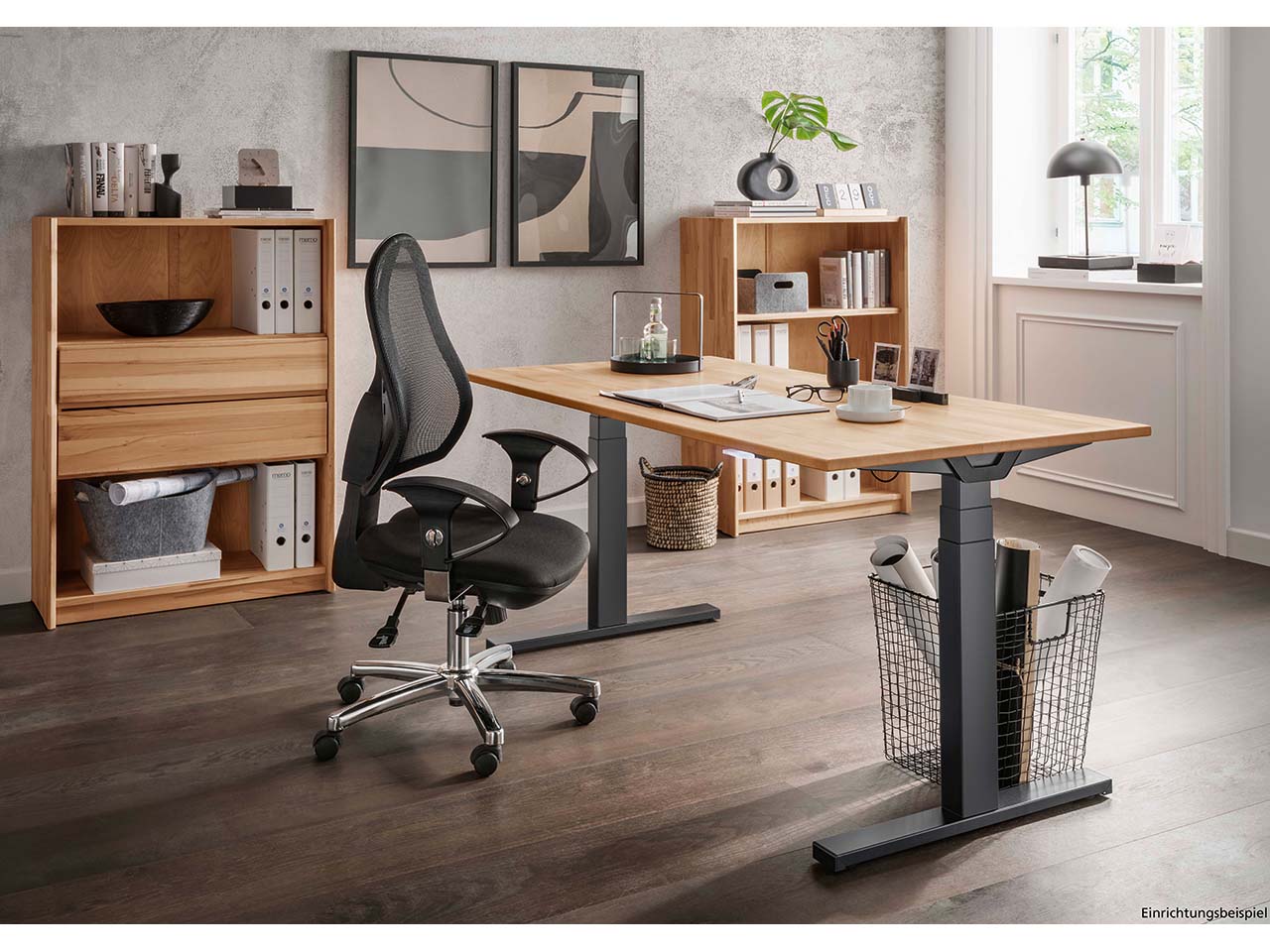 - Sitz- und Stehschreibtisch mit elektrischer Höhenverstellung
