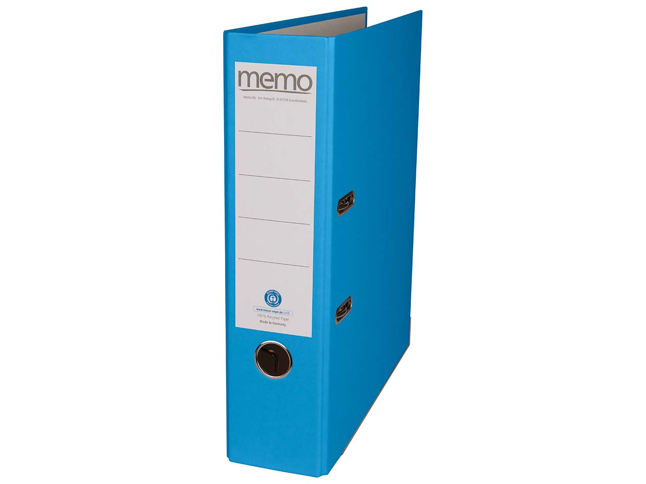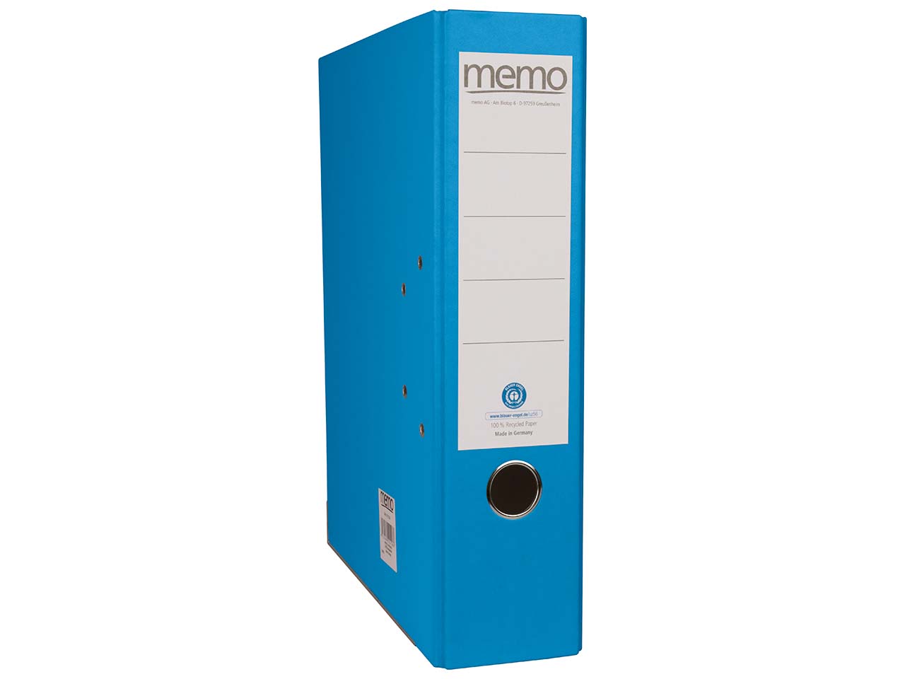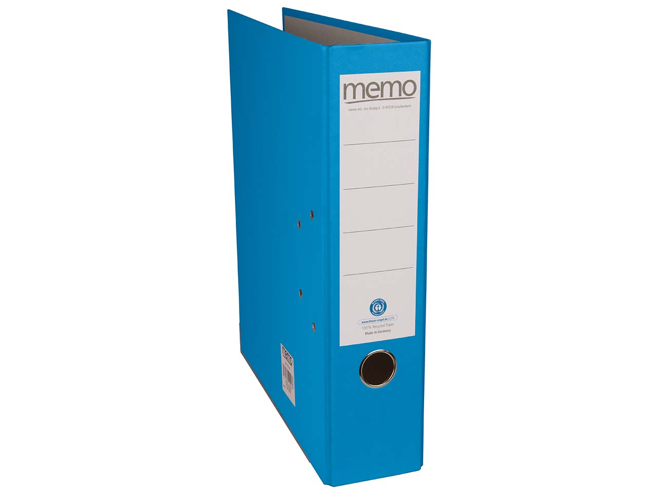 Der memo Ordner ist aus Recyclingpappe gefertigt und für seine Umweltverträglichkeit mit dem Blauen Engel ausgezeichnet.
