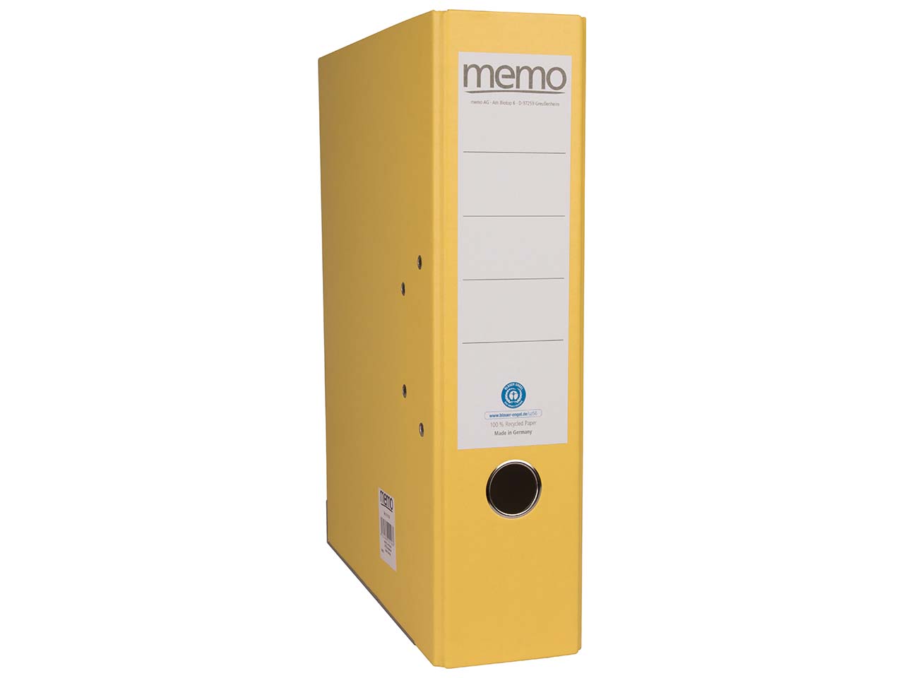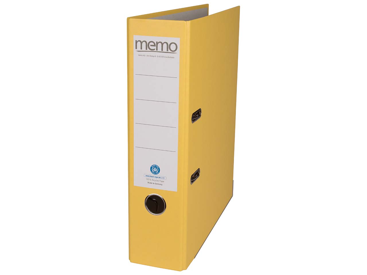 Die kunststofffreie Alternative: Der memo Ordner "Color" aus 100 % Recyclingpappe bringt farblich abgestimmte Ordnung in Unterlagen. Mit kratzfestem und abwischbarem Bezugspapier. Ausgezeichnet mit dem Blauen Engel. Für Format DIN A4. T 28,5 x H 32 cm. Rückenbreite 8 cm. Farbe gelb.