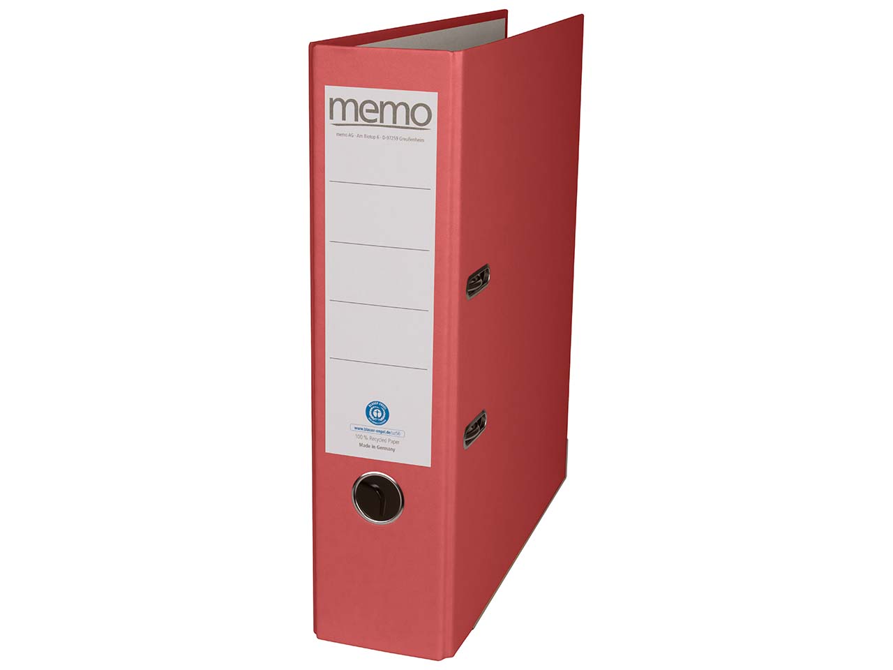 Die kunststofffreie Alternative: Der memo Ordner "Color" aus 100 % Recyclingpappe bringt farblich abgestimmte Ordnung in Unterlagen. Mit kratzfestem und abwischbarem Bezugspapier. Ausgezeichnet mit dem Blauen Engel. Für Format DIN A4. T 28,5 x H 32 cm. Rückenbreite 8 cm. Farbe rot.