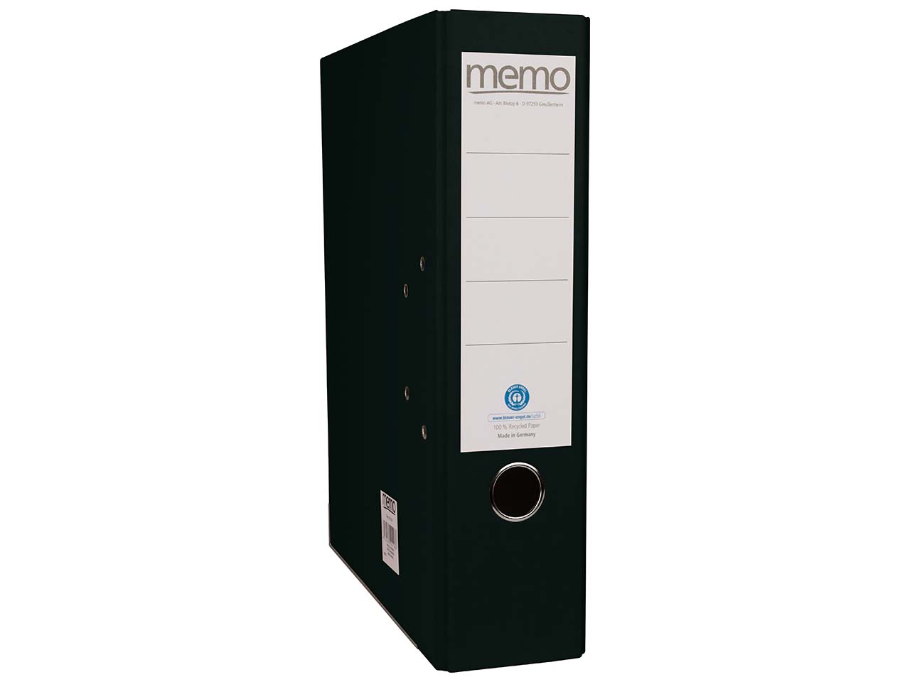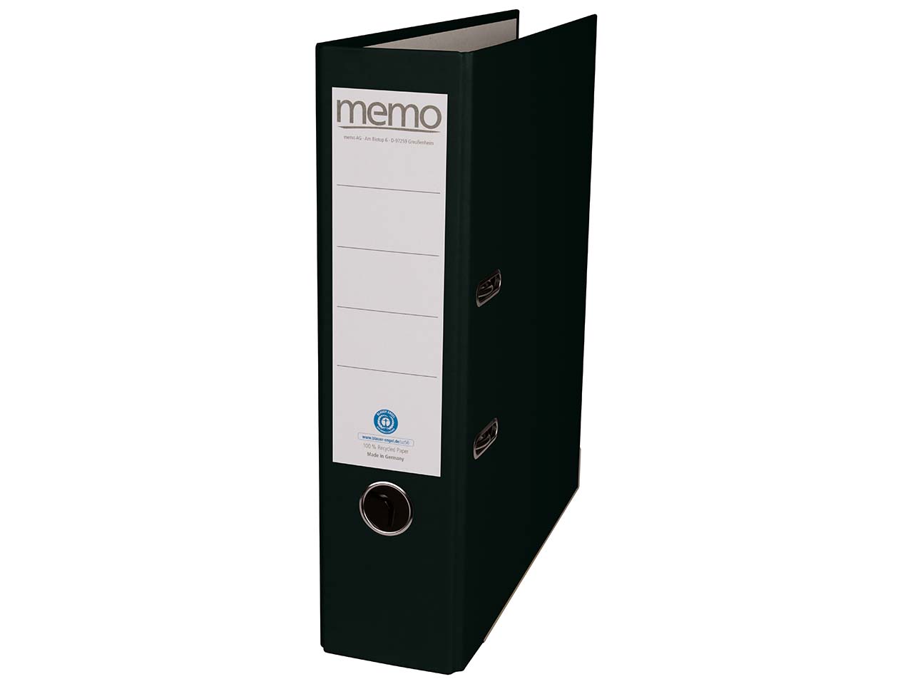 Der memo Ordner ist aus Recyclingpappe gefertigt und für seine Umweltverträglichkeit mit dem Blauen Engel ausgezeichnet.