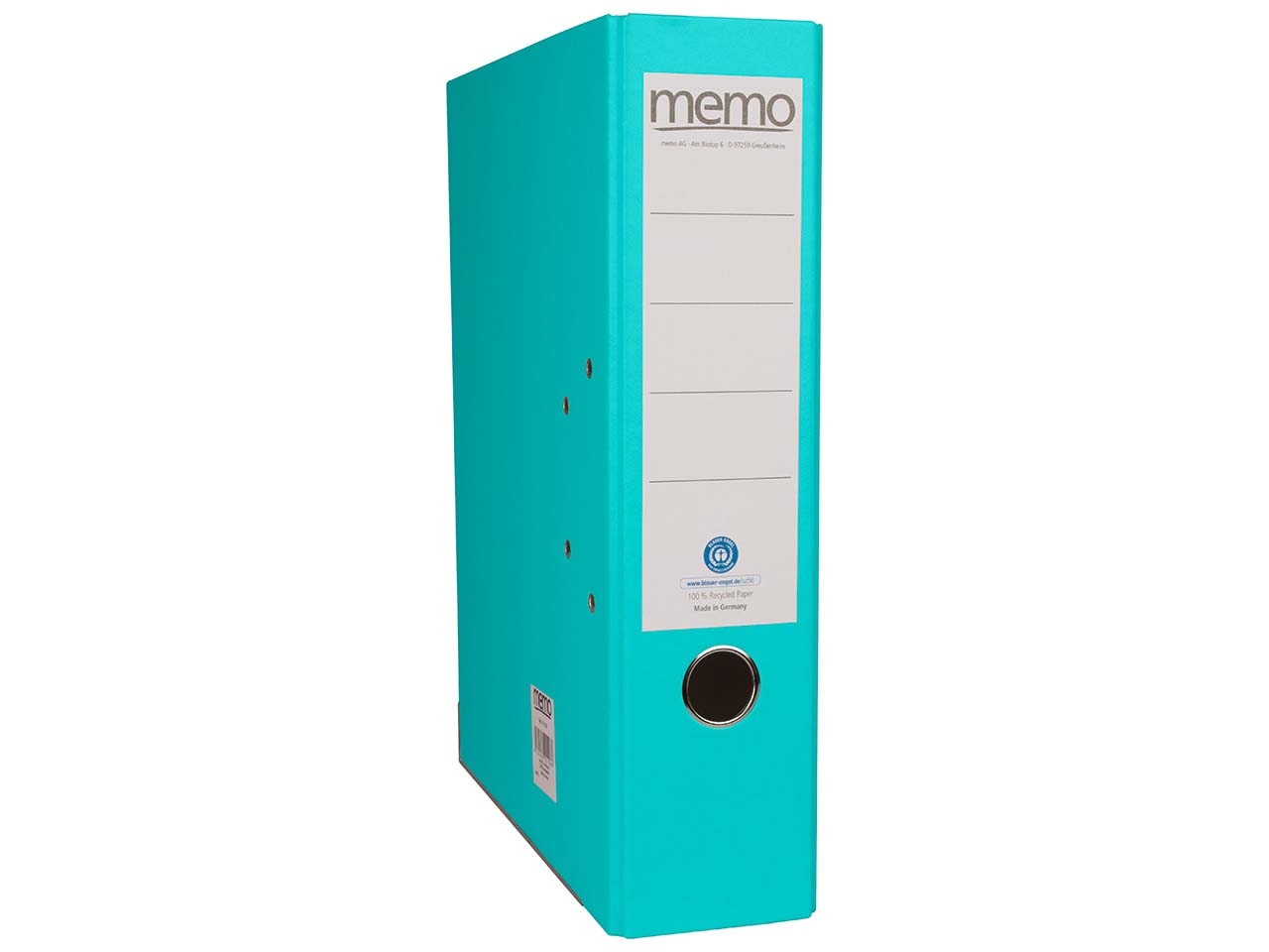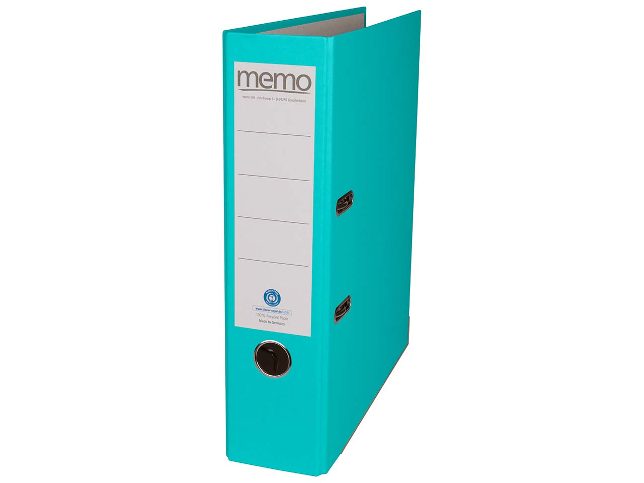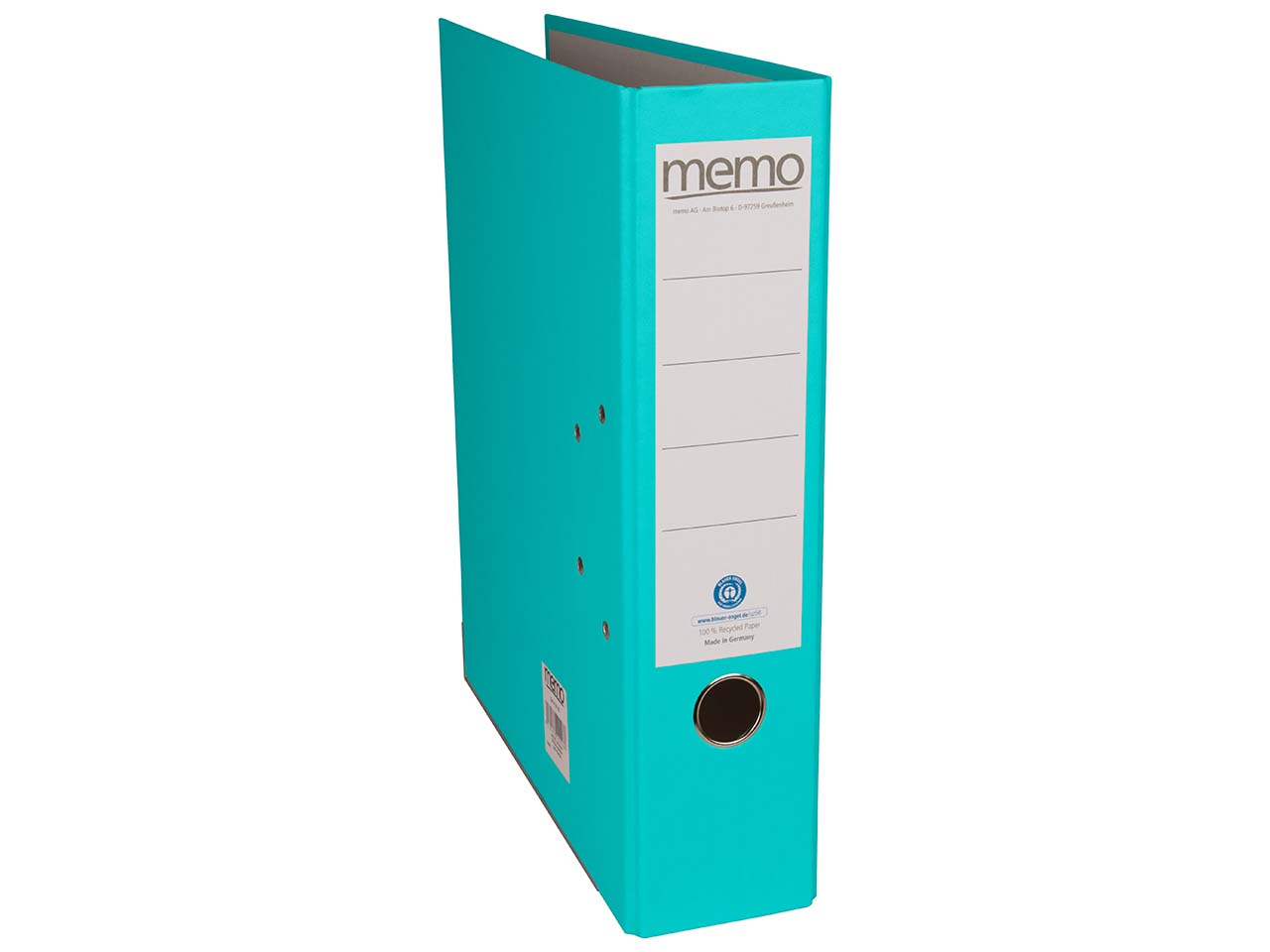 Der memo Ordner ist aus Recyclingpappe gefertigt und für seine Umweltverträglichkeit mit dem Blauen Engel ausgezeichnet.