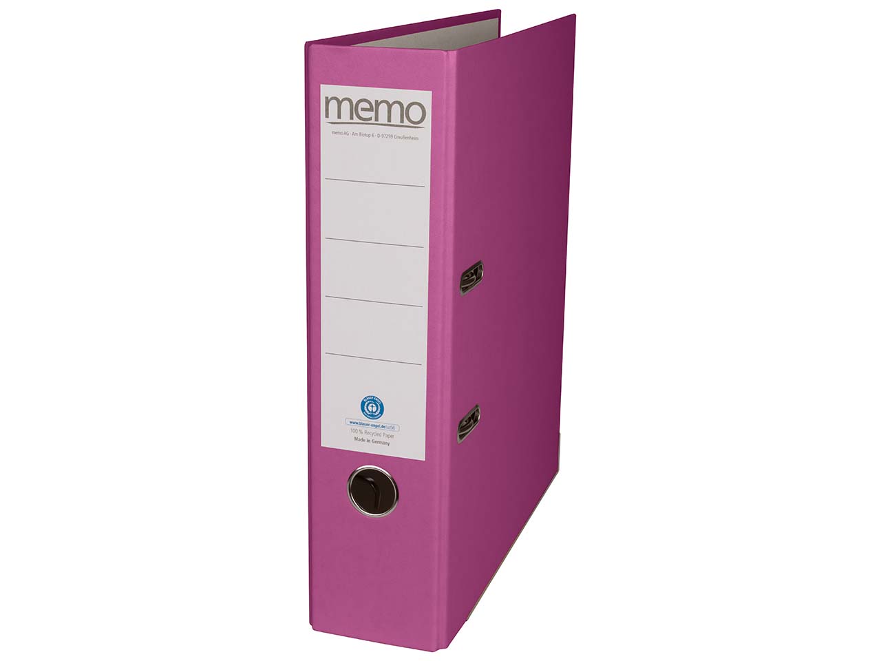 Die kunststofffreie Alternative: Der memo Ordner "Color" aus 100 % Recyclingpappe bringt farblich abgestimmte Ordnung in Unterlagen. Mit kratzfestem und abwischbarem Bezugspapier. Ausgezeichnet mit dem Blauen Engel. Für Format DIN A4. T 28,5 x H 32 cm. Rückenbreite 8 cm. Farbe violett.